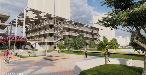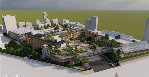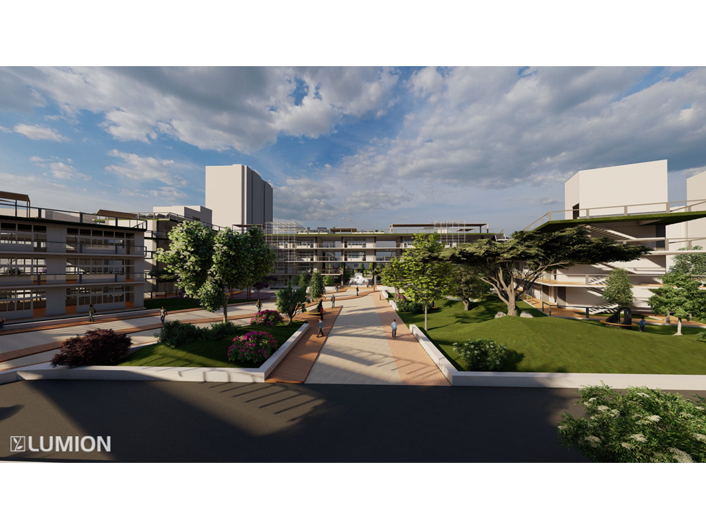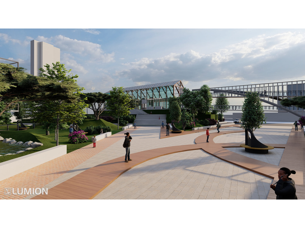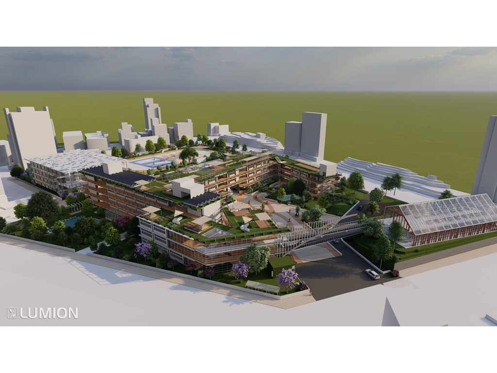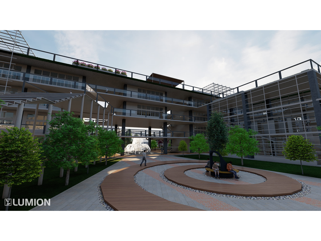 2.校園內部有大型戶外階梯與空中橋實現了全校通達的效果因文山區長期下雨這樣做可以讓學生在不淋雨的狀況下通達溫室/活動中心/教室/學生餐廳/圖書館等區域