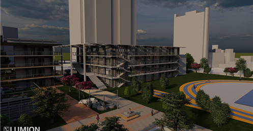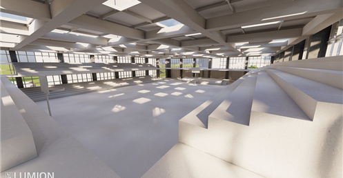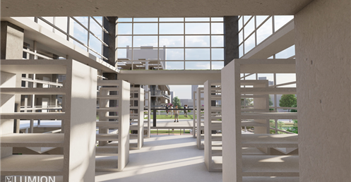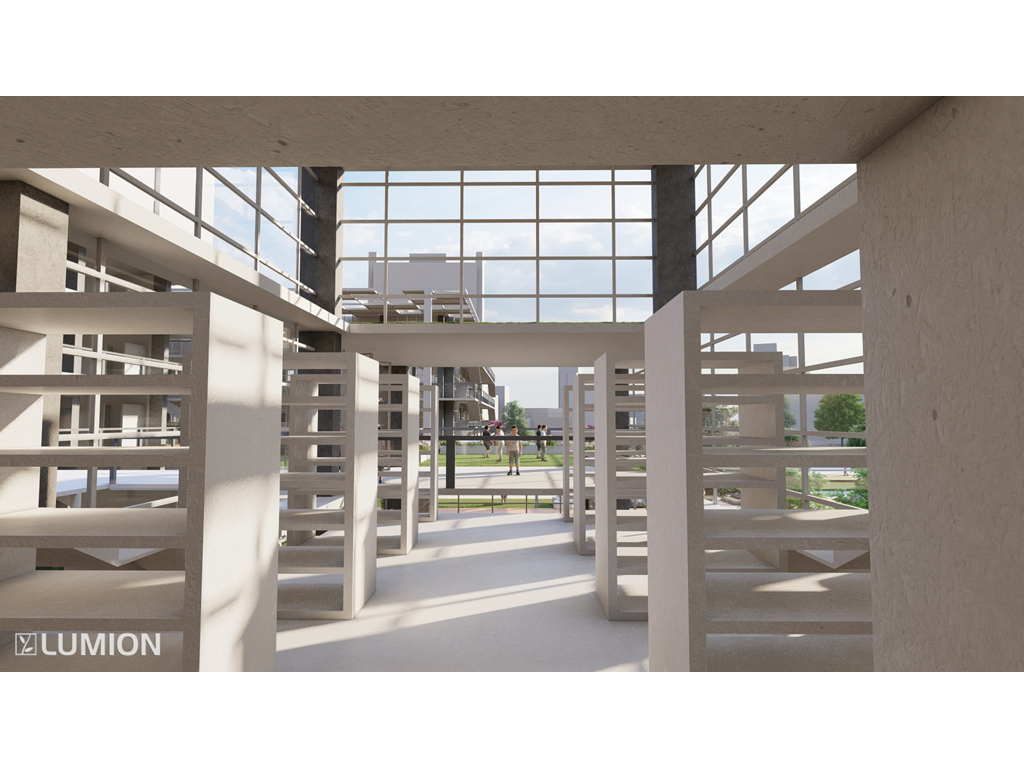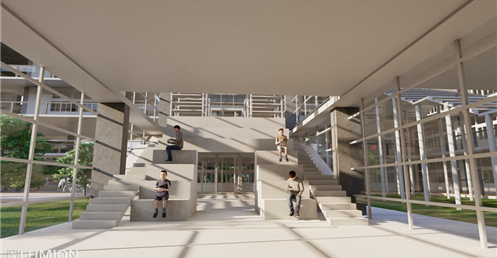 6.圖書館是一棟階梯式的建築也和其他的不同我將三面都開窗這樣是為了視覺的通透感與希望學生可以在更有趣的環境下學習。