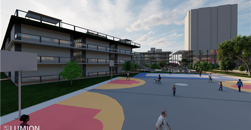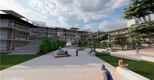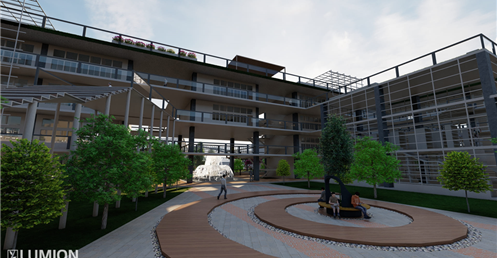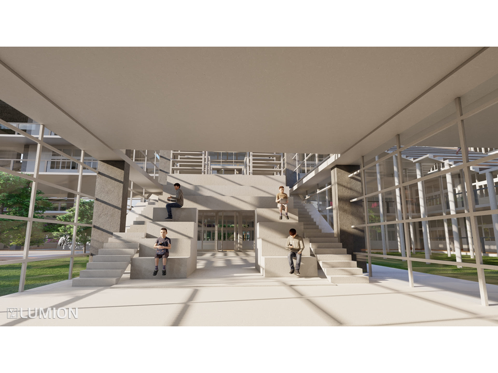 5.校園內部增設了多個停留點例如:操場旁的涼亭/頂樓的戶外休憩空間/校門口進入後的停留空間等這樣做是希望可以讓學生在下課之餘可以放鬆不要一直待在教室內部