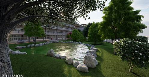 4.整體校園有多處的生態池和保留了原國小內部的成年老木在改頭換面的同時我也希望可以盡量保留原有的植栽與樹木