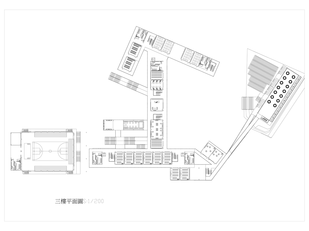 3.活動中心內部將原木柵國小中的游泳池和運動場集會場所等集中在一起,充分利用空間