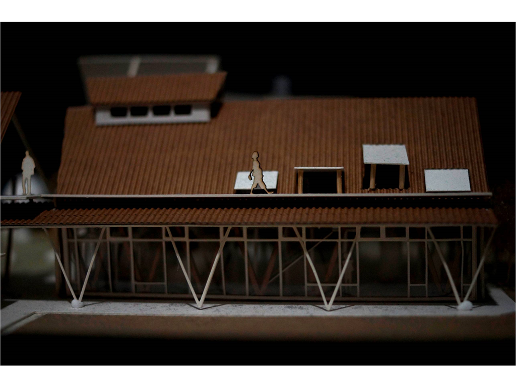 「西向」原先量體往南推移,在原有的位置置入框架,成為員工可休憩的空間,也阻擋大部分陽光進入於室內。