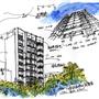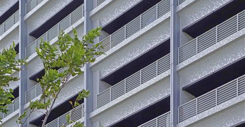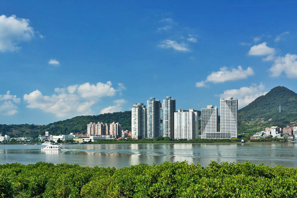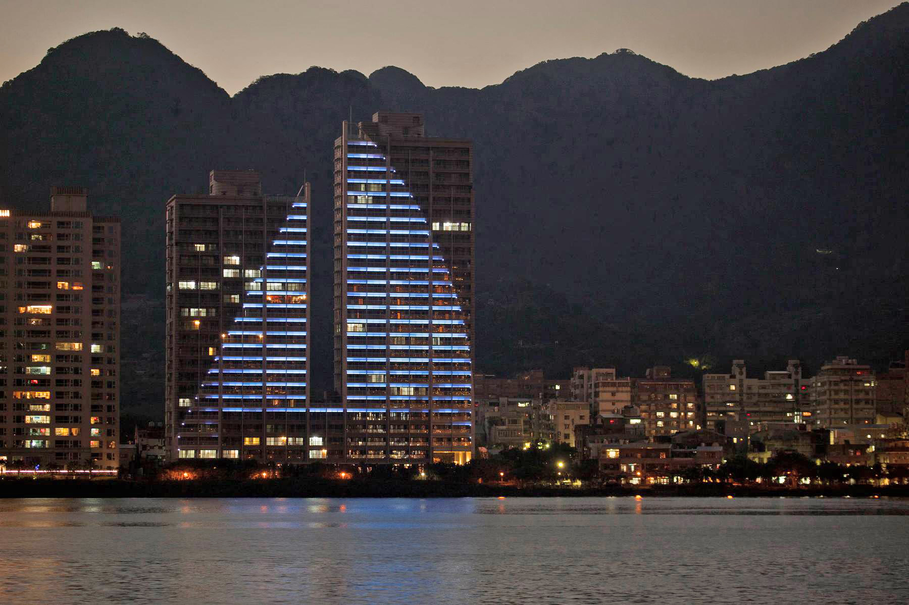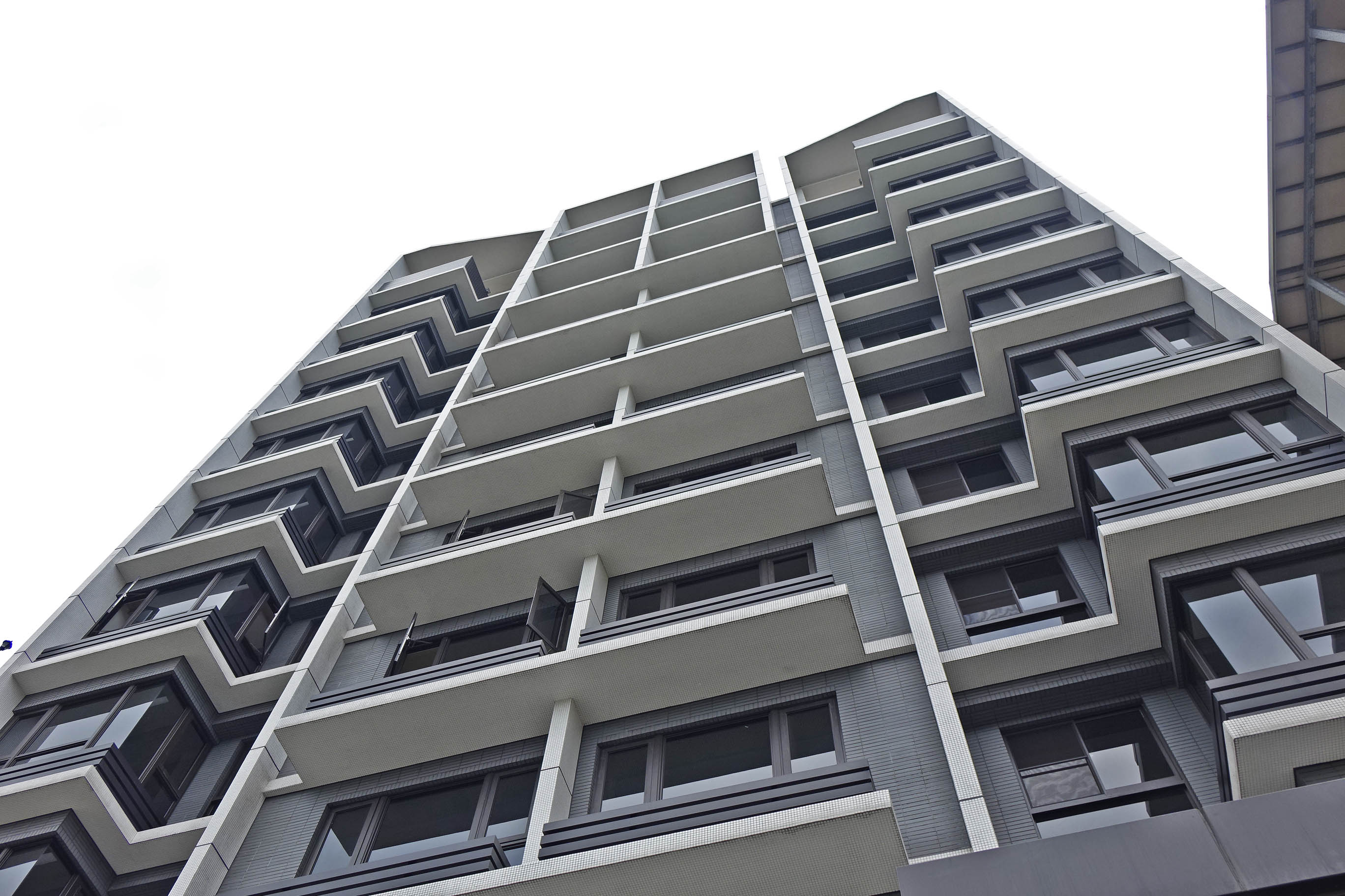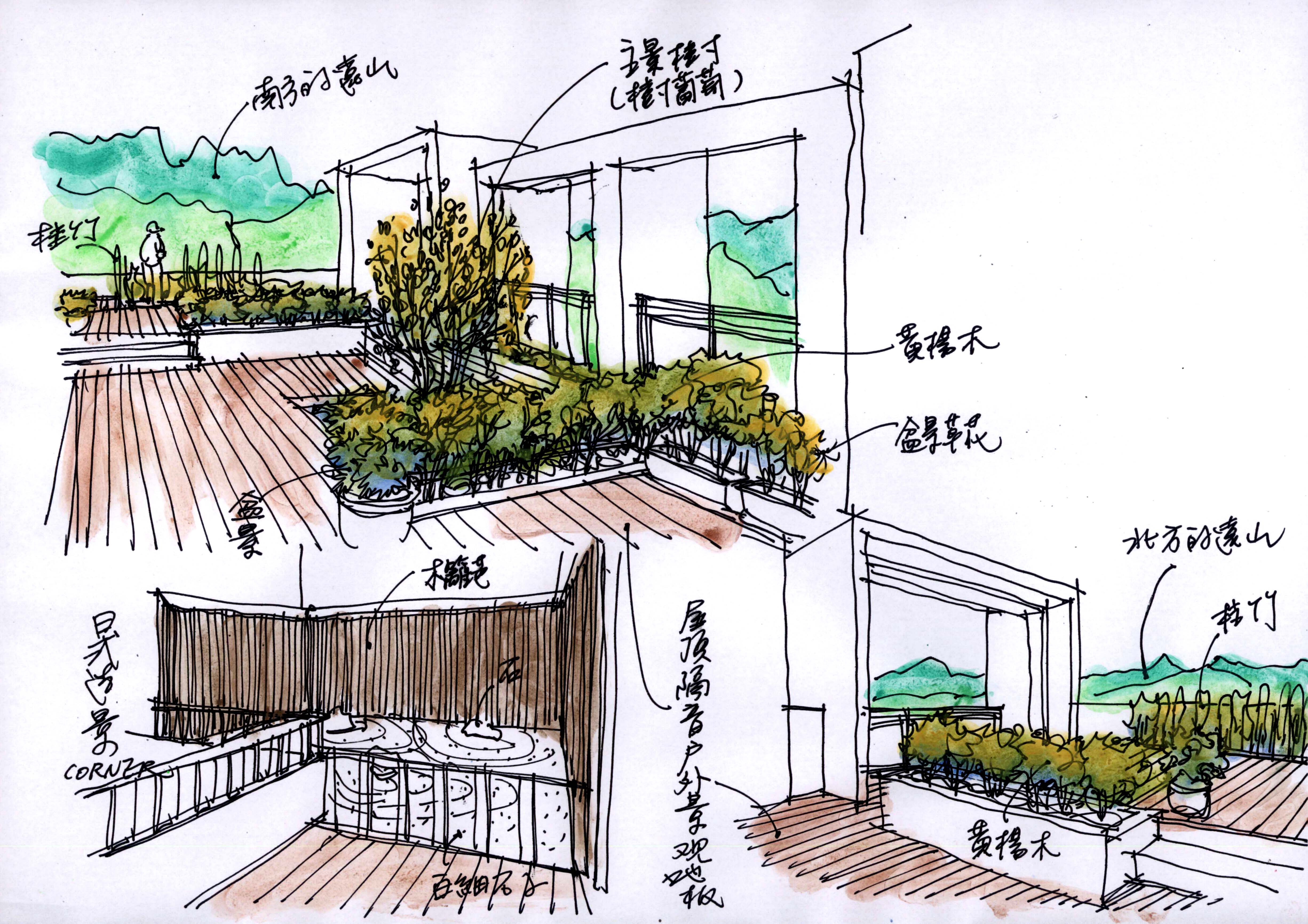 A:佛朗明哥案是事務所很早期的設計,當其在設計施工時我仍在學校就讀尚未畢業,對於這個案子的內容,我便代替事務所全體來回答。這案子坐落在正面面對三芝淺水灣的山坡地上,後側與左右三面環山,在開發者在商言商一定必須將容積用完的狀況,如何降低建築物量體對環境的衝擊便是重要課題。因此平面配置上將前排與後排建築盡可能拉開間距並且互相交錯,各棟建築呼應山勢變化樓層數有高有低,高樓層建築逐層退縮露台,並在立面上做出較多進退面的效果。以上作法,達到讓建築群從外往內看呈現如同自然山勢的高低變化,從內往外看亦兼顧休閒住宅面對海景的機會。