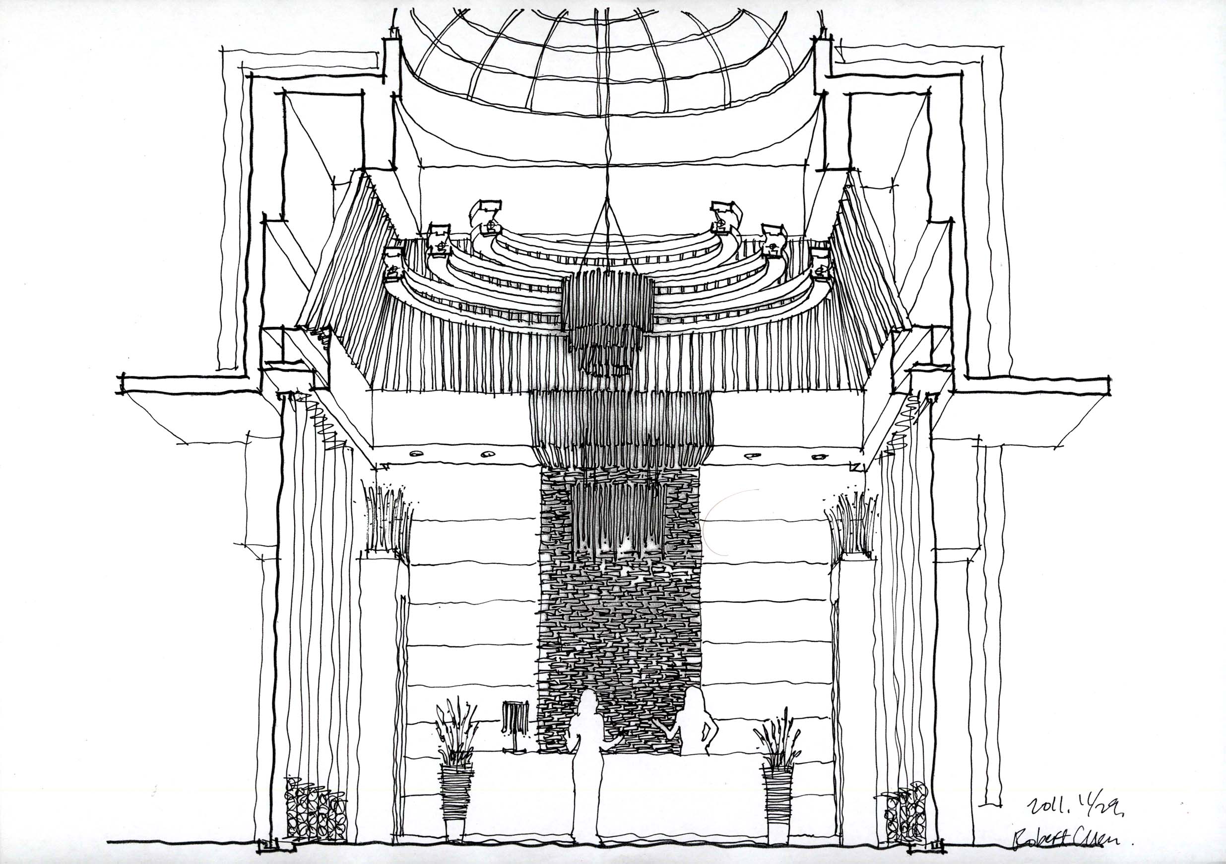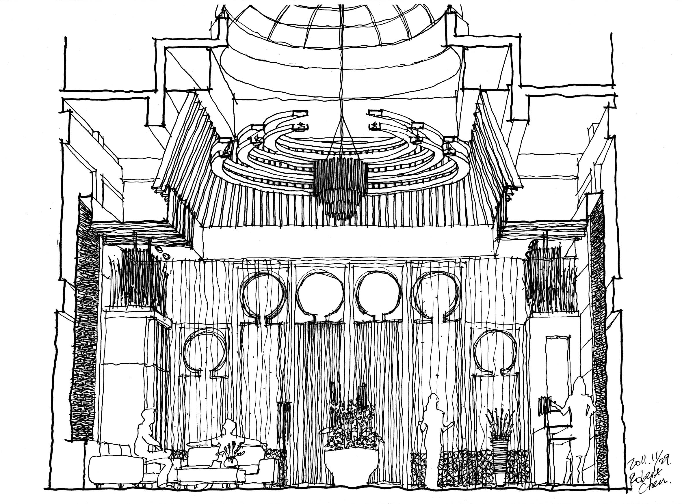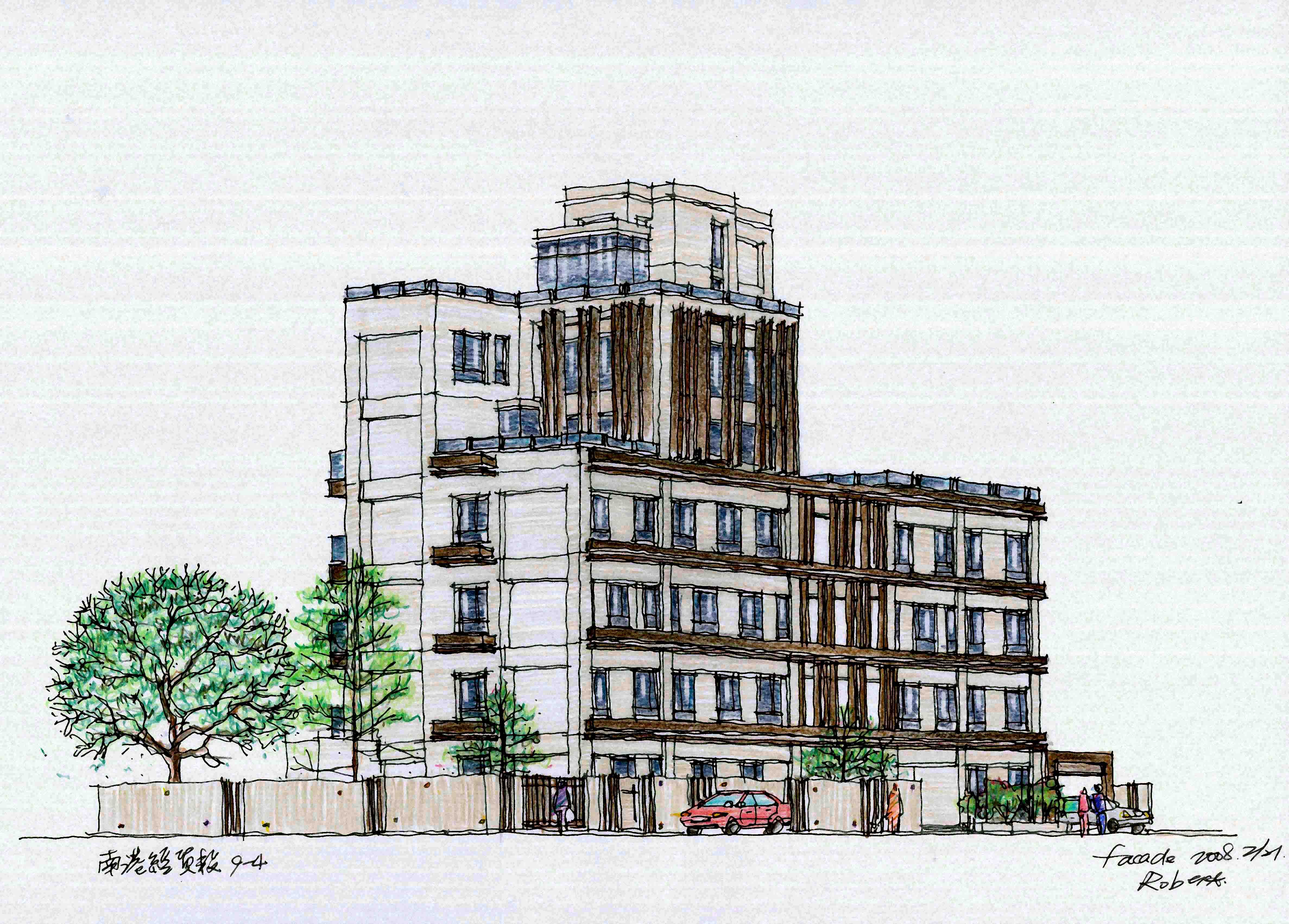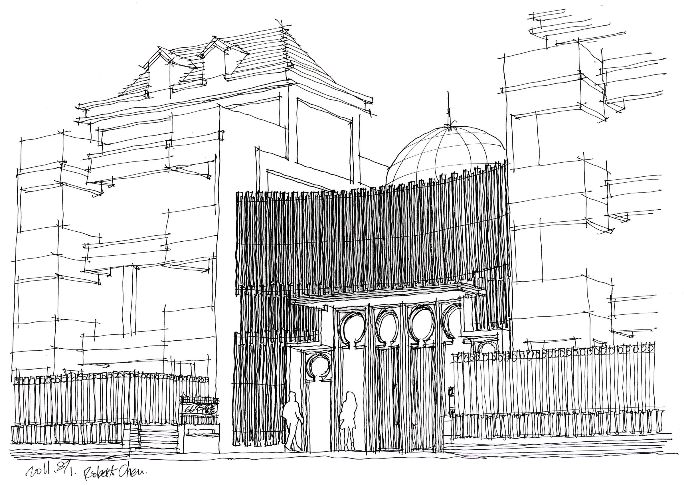 A:建築設計者的角色有時就像是解決問題的救火隊。譬如我曾經接過一個別墅群的設計案,那個案子原本已經由別的建築師設計完成並且取得執照正在施工,但業主對原設計的社區出入口主建築體一直感到並不滿意,偏偏這個部份的設計好壞對整體效果影響巨大,於是業主找我幫忙針對這部份重新設計。我從一開始重新設計立面,到設計室內大廳,最後連大廳內的吊燈也一併設計進去,最後獲得了大家都滿意的成果。我想設計者的價值就是在這裡體現,很簡單,就是做出好設計來。作為一個建築師對於所有設計相關事項必須時時做出決斷,業主、施工者等等,所有人都在瞪大眼睛盯著你。你既對設計具有決斷權,同時也對最後呈現的效果負責。這就是設計者的能力及價值所在。