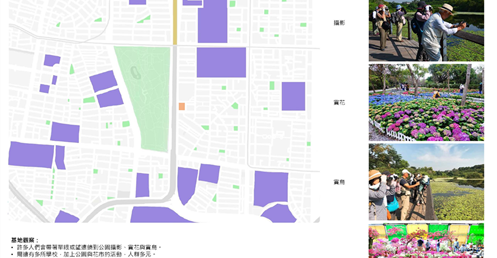 結合城市中的永續棲地,以自然與教育為主題,讓公園裡的攝影專業人士、喜歡賞花的居民與周遭學校的學生有機會共同學習與實驗。