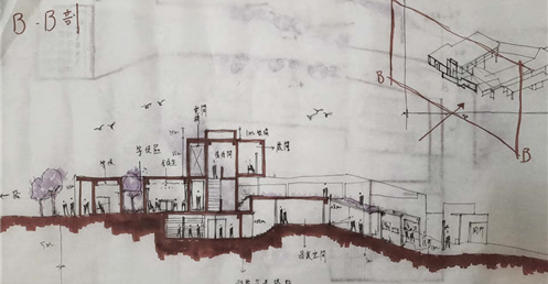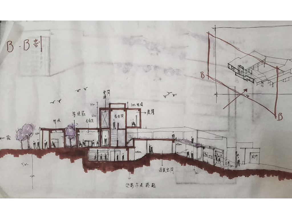 建築的語彙上表達出形隨機能而生,利用動線去規劃空間並且順應基地、順應自然。
