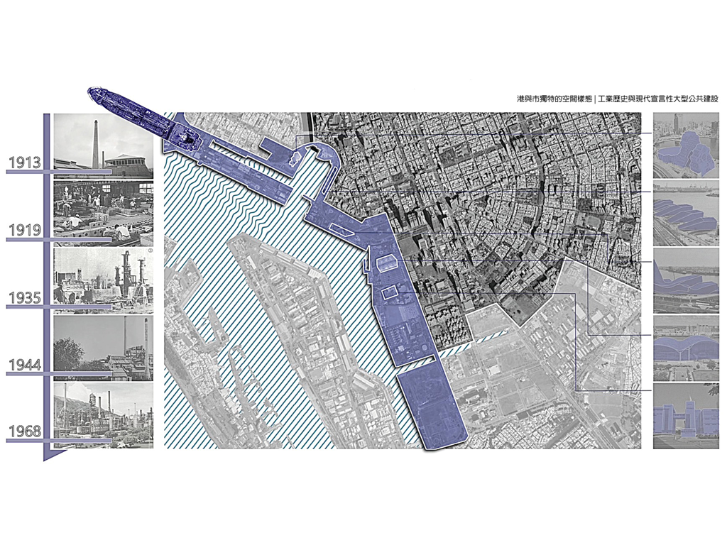 時至今日,人們開始重新審視港區與城市的關係,政府也開始推動港市合一政策,新建築不斷落成,高雄正在轉型,也使阻擋在港市之間的舊工廠、石化儲槽正一個個被拆除。拜港市合一之賜,整個港開始被打開來。岸邊的幾座新公共建設,多半為強調與國際接軌的宣言型建築,沿著線性推動的開發案。