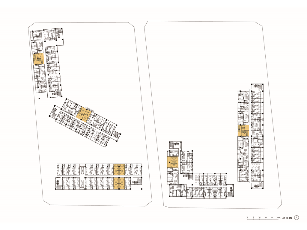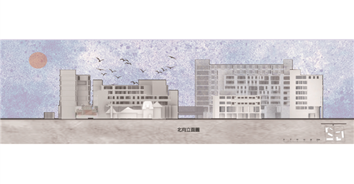 宿舍中的公共空間在立面上呈現隨機的開口分布,以兩層為單位,下層交誼空間,上層則是挑空,寬度較窄的則是洗曬衣空間。