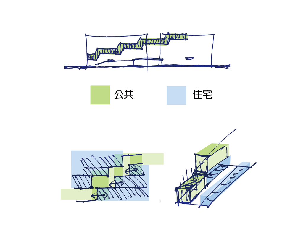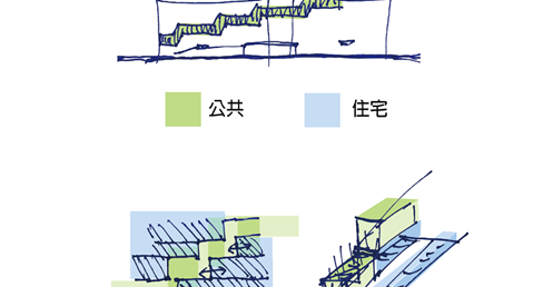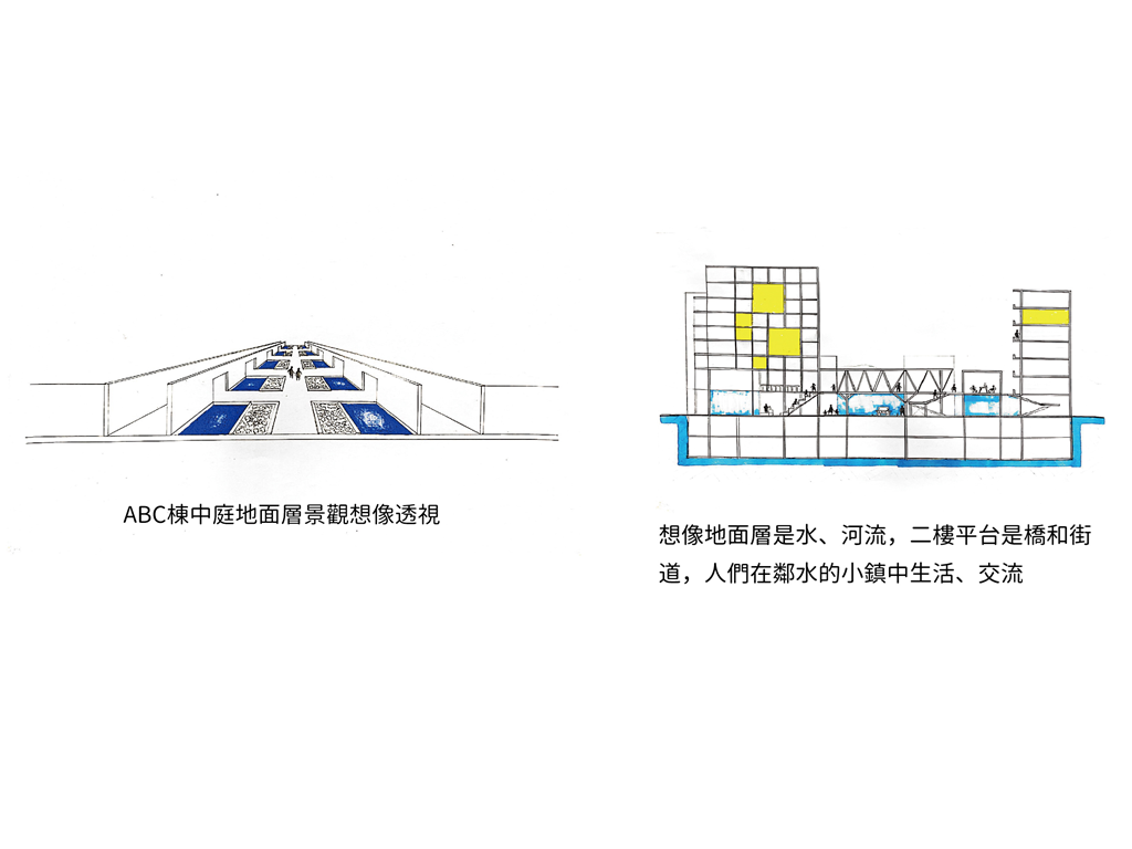 社會住宅不只是以較低價格在都市中居住的手段,應該提供相應策略,幫助居民在社會上站穩腳步。為了生活打拼的人們在這裡交會,如同古時候人們傍水而居、依靠水帶來的豐饒,讓社會住宅成為水一般的存在。