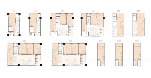 除了地面層置入水景,在住居空間中混合交流空間,透過光線和人的交會與流動去稀釋都市的擁擠,追求心靈的動態平衡。為此,在住宅的房型間置入階梯狀的共享客廳,光線延續的同時,保有公共空間的連續性。