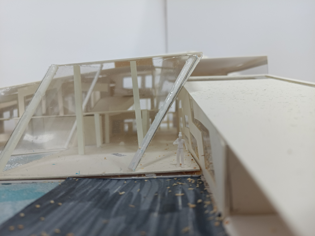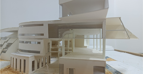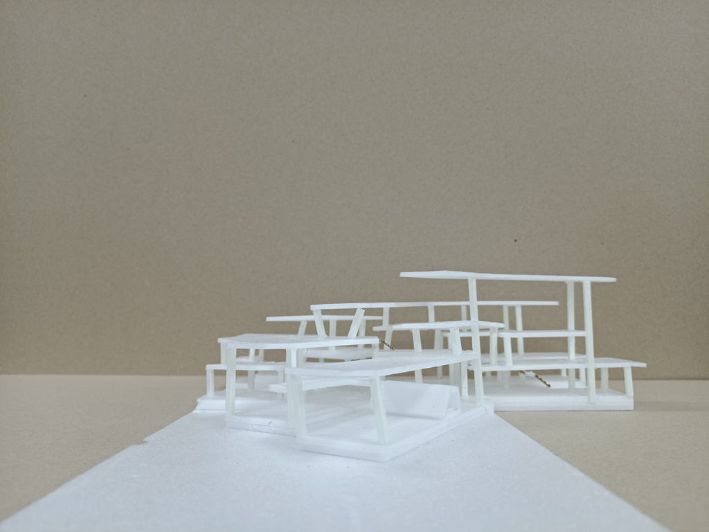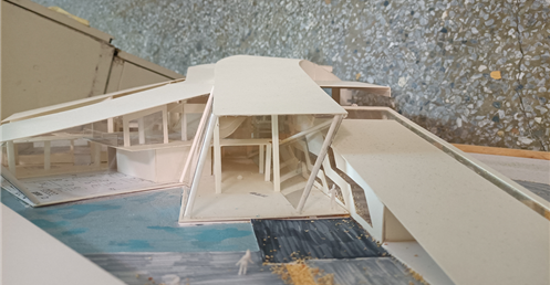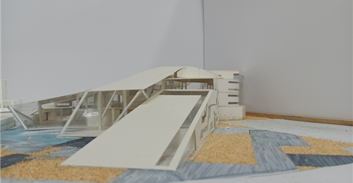 我將每個年級工作室的空間互相左右錯開之外,也做了上下錯開,運用錯層增加各個工作室的交流性,也因為錯開原因使每間工作室都能擁有陽台或露台的空間。