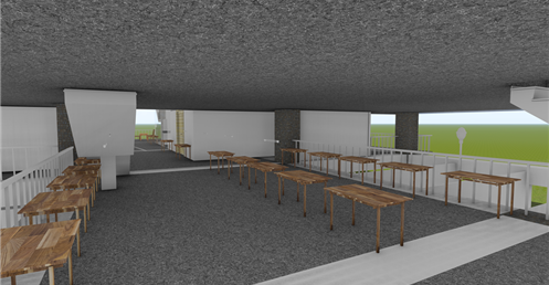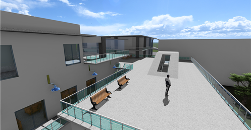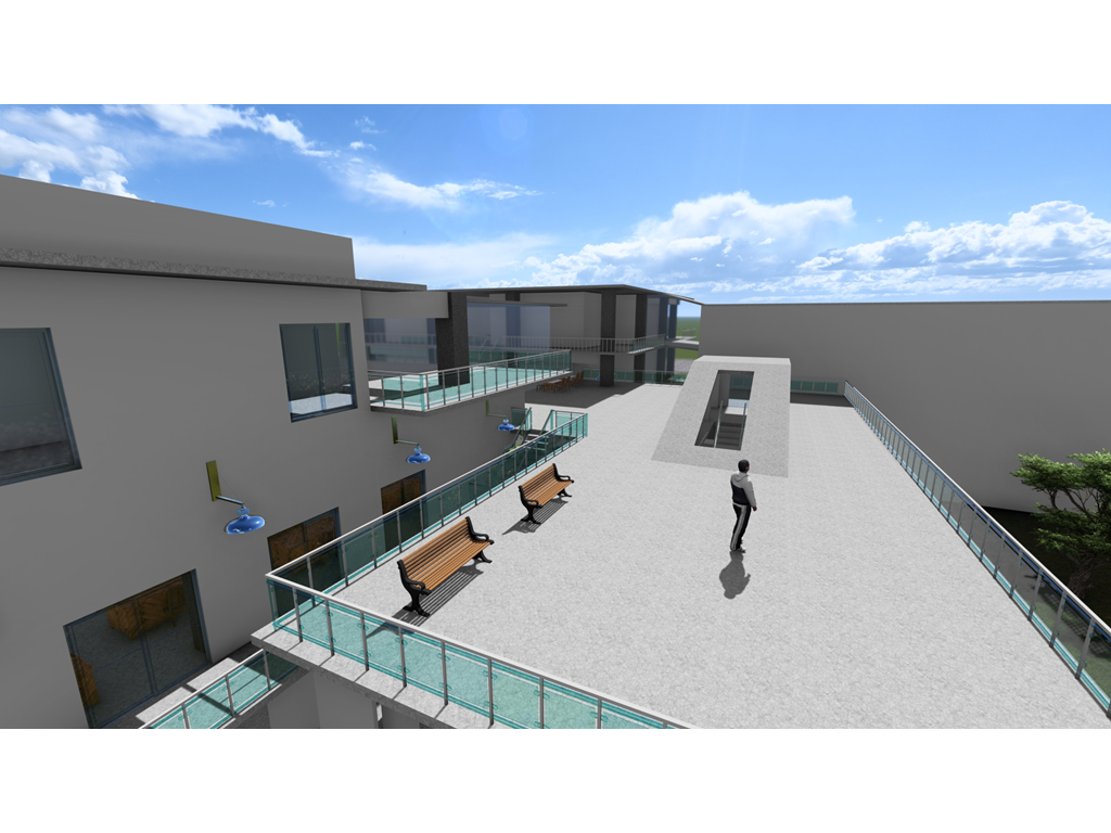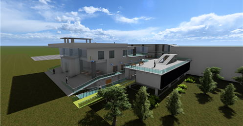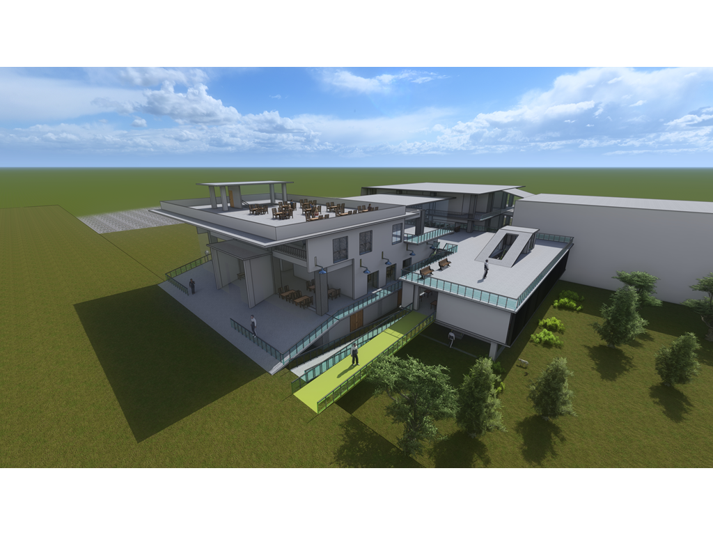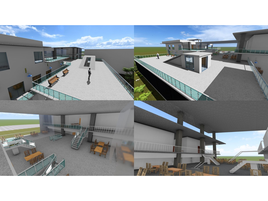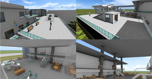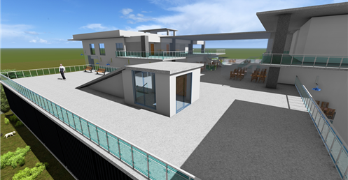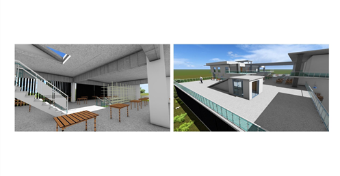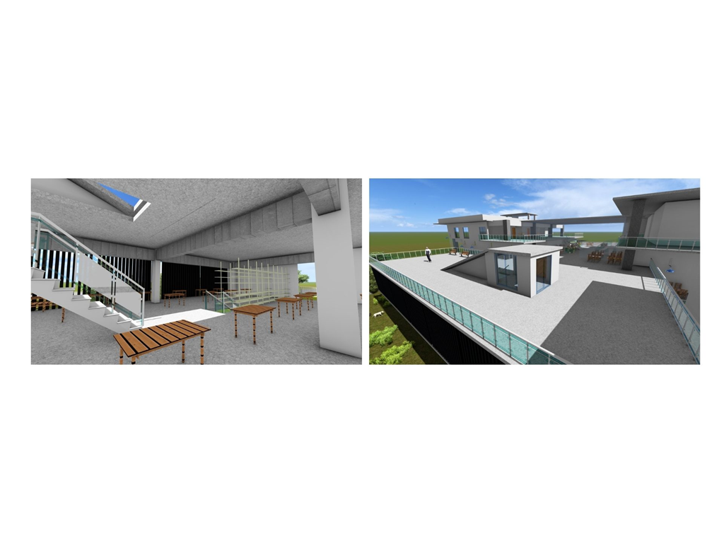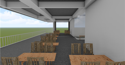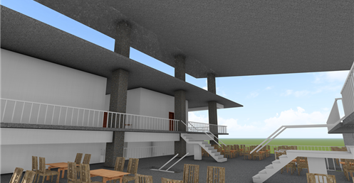 東向延伸的露臺則提供了一個戶外休閒區域,這裡可以供學生散步、休憩,享受自然的美好。這樣的環境不僅促進了健康,還為學生提供了一個舒適的放鬆場所。