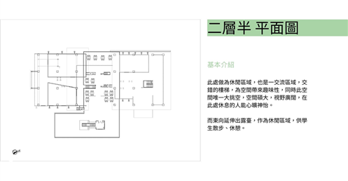 這裡提供了一個小型評圖的區域,促進學生之間的討論和交流。這樣的空間布局有助於促進建築學生之間的合作和學習。