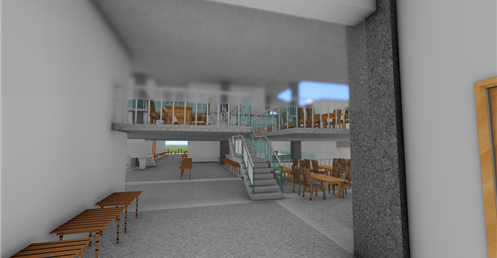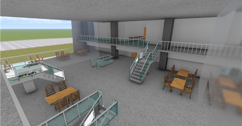 北面的休息區域設置了交錯的樓梯,這種特殊的設計為空間注入了趣味性。大挑空的空間確保了視野的開闊,使得休息的學生可以盡情地放鬆身心,同時促進社交和交流。
