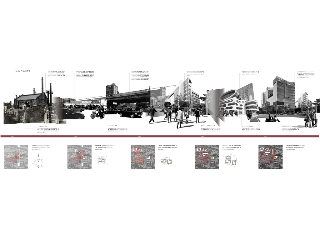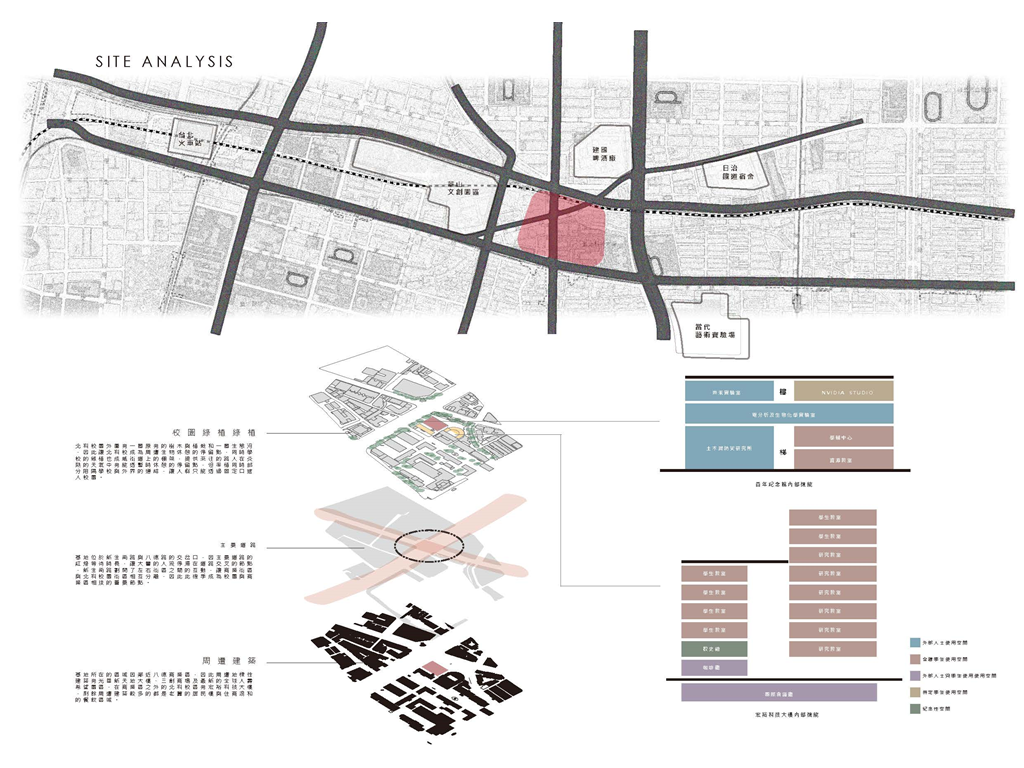 北科大光華館作為校園與外部產業互動的大門,被期待能與附近的八德商圈接軌;然而,既有封閉的建築配置以及制式的類型空間設計,已無法滿足周遭環境所帶來的變遷。