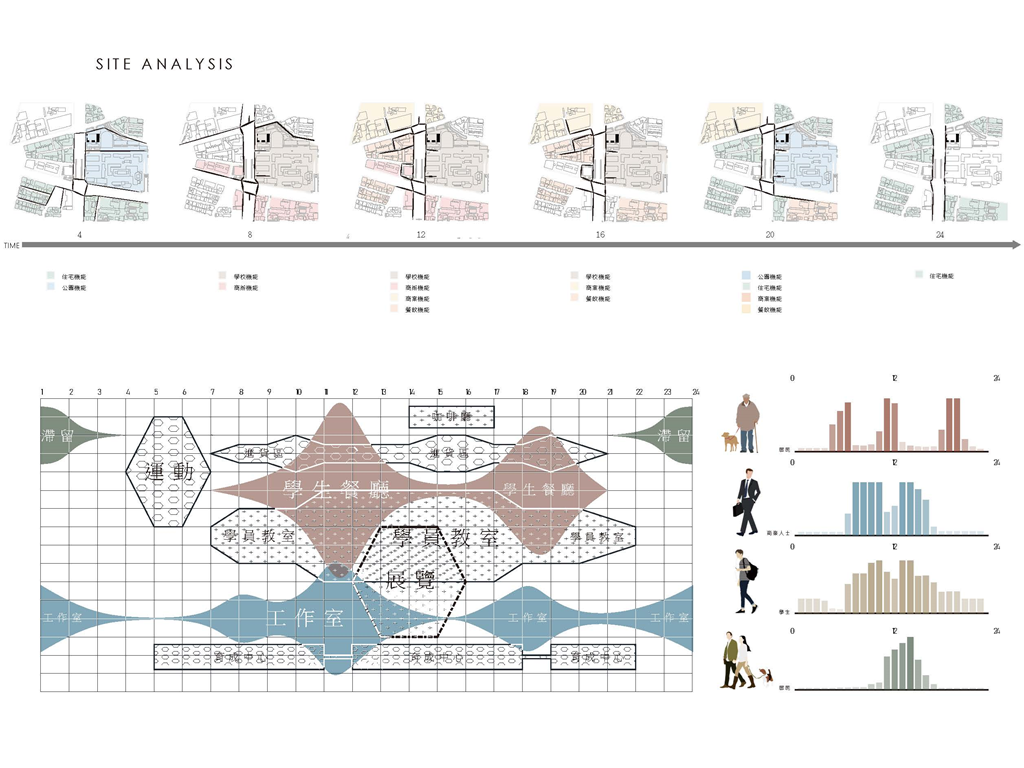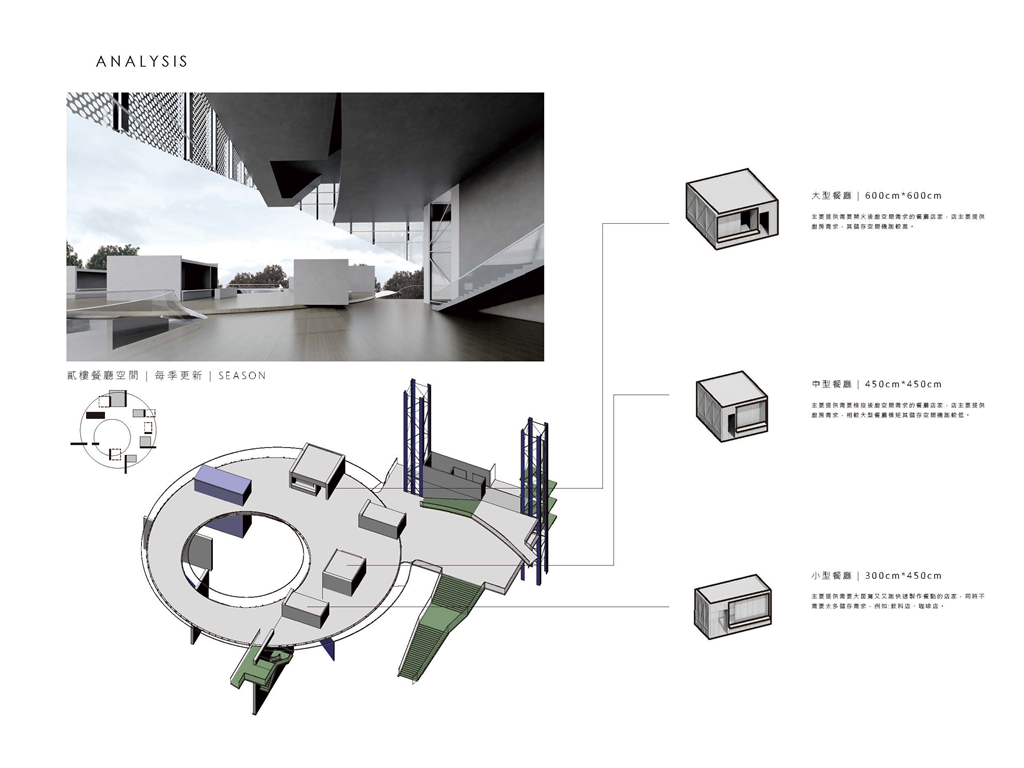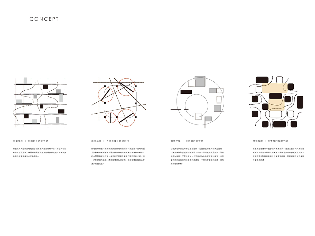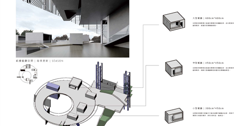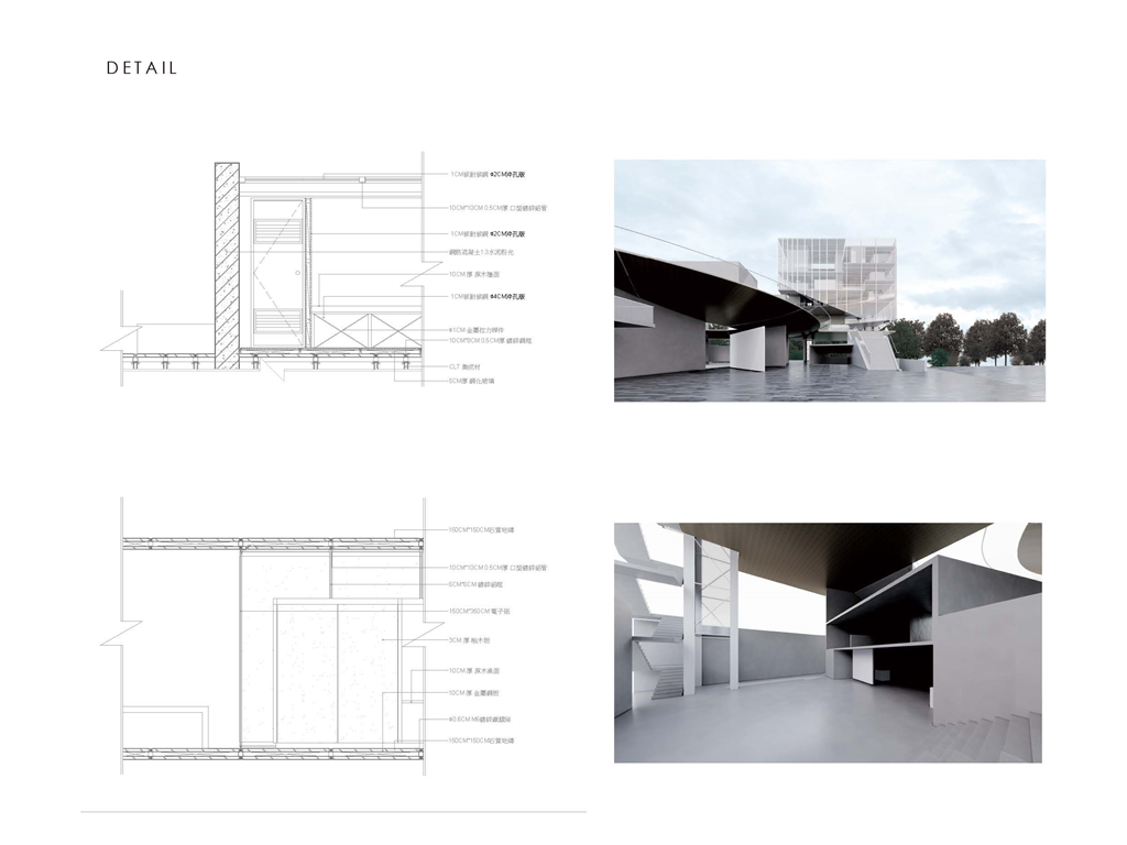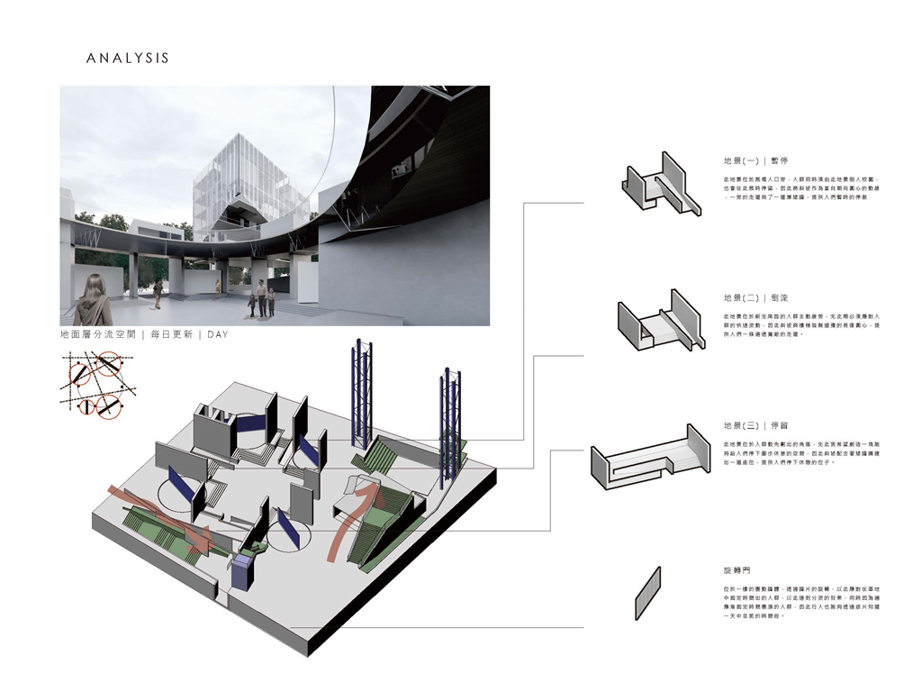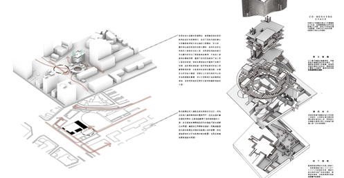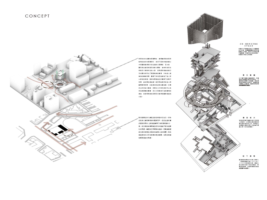 因此,我運用能將資訊可視化的建築立面來回應當代瞬息變化的環境,並以更開放的四種平面關係,「強化使用權、減少擁有權」的方式來打開基地的共享性。 《宛轉光圓》希望能夠讓學生、居民及上班族,皆能在這片光盤上找到屬於自己的位置。