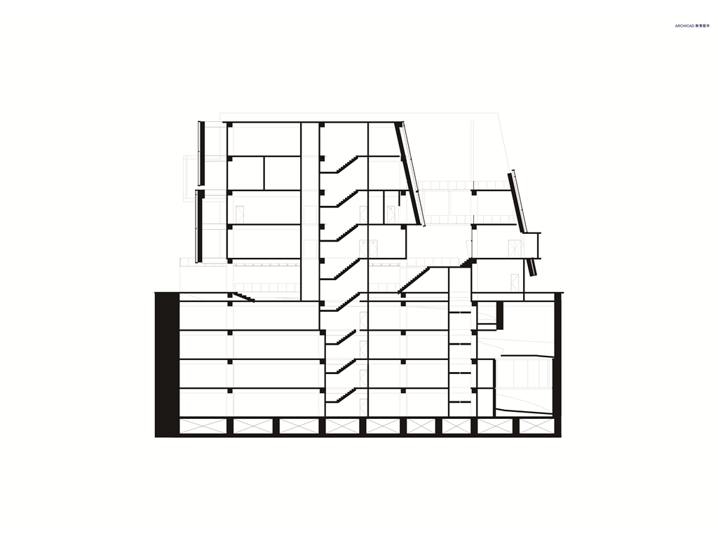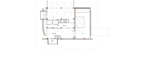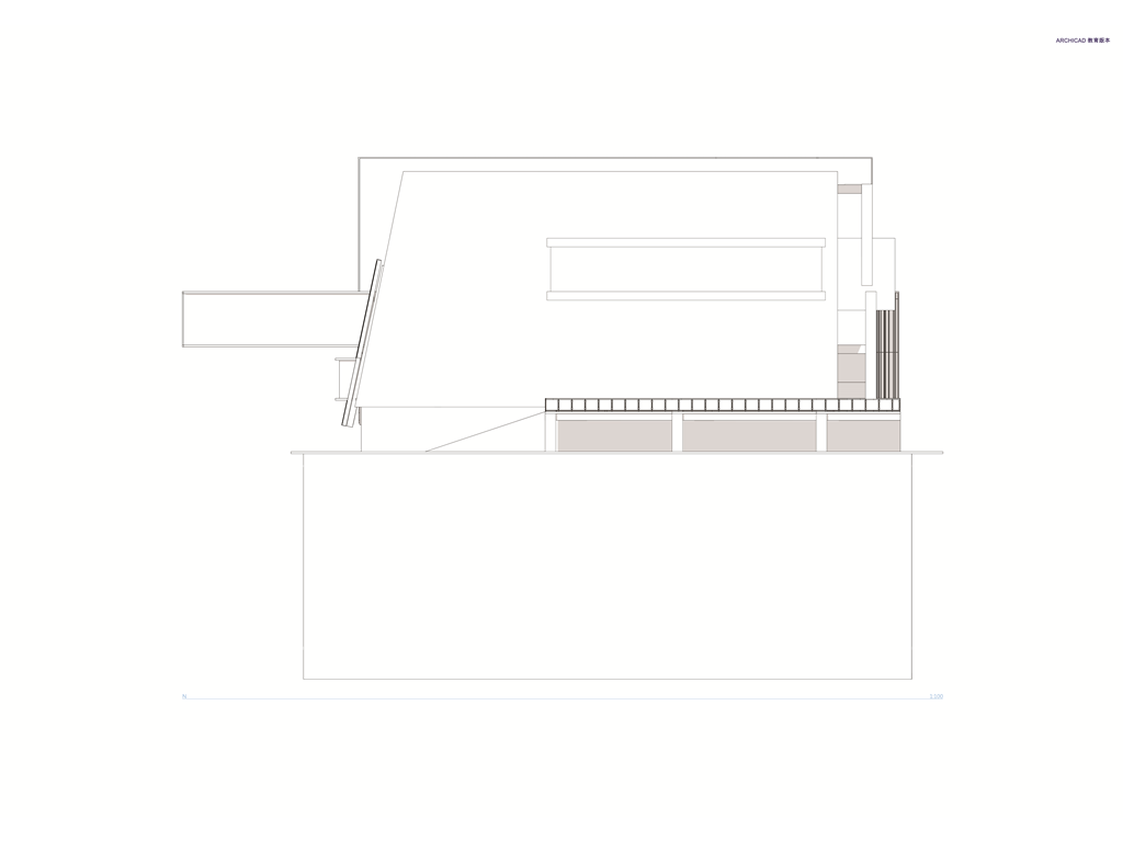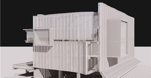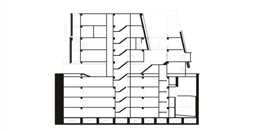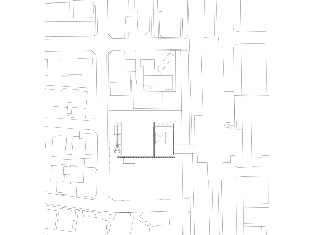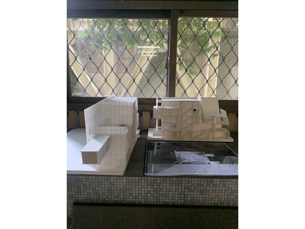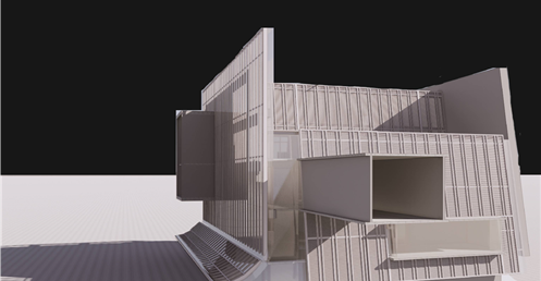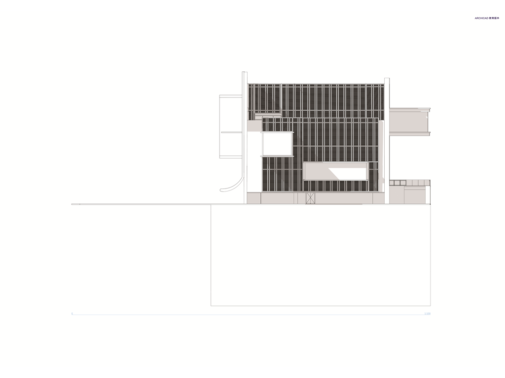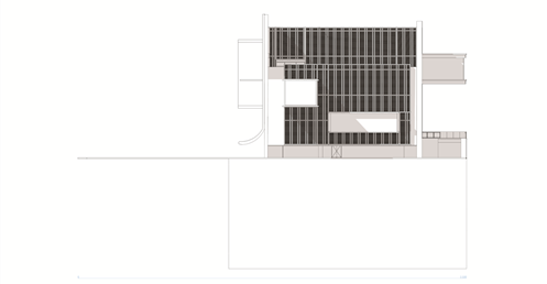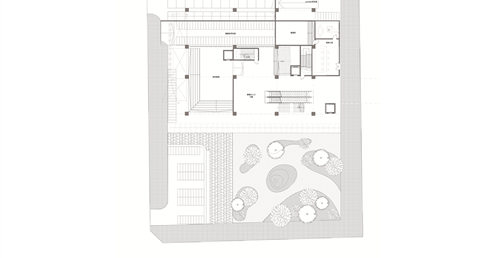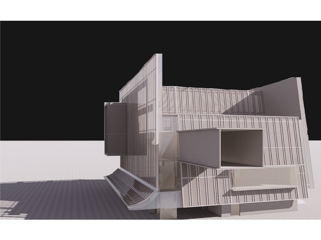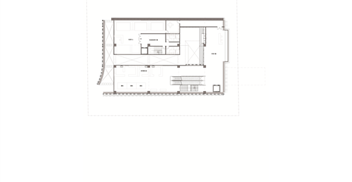 在面對公園面運用像是掀起裙擺的大牆設計,在距離地面留兩公尺高度的開口,隱晦的吸引人群,當人們跟著裙襬進入本棟建築後,先見到的是為里民打造的活動廣場,再來是挑高的入口大廳,在剖面圖可清楚地看到入口大廳上方像是這棟建築的呼吸道,是這棟建築與外界"保持距離"的連接口,為本棟建築帶來流動感。