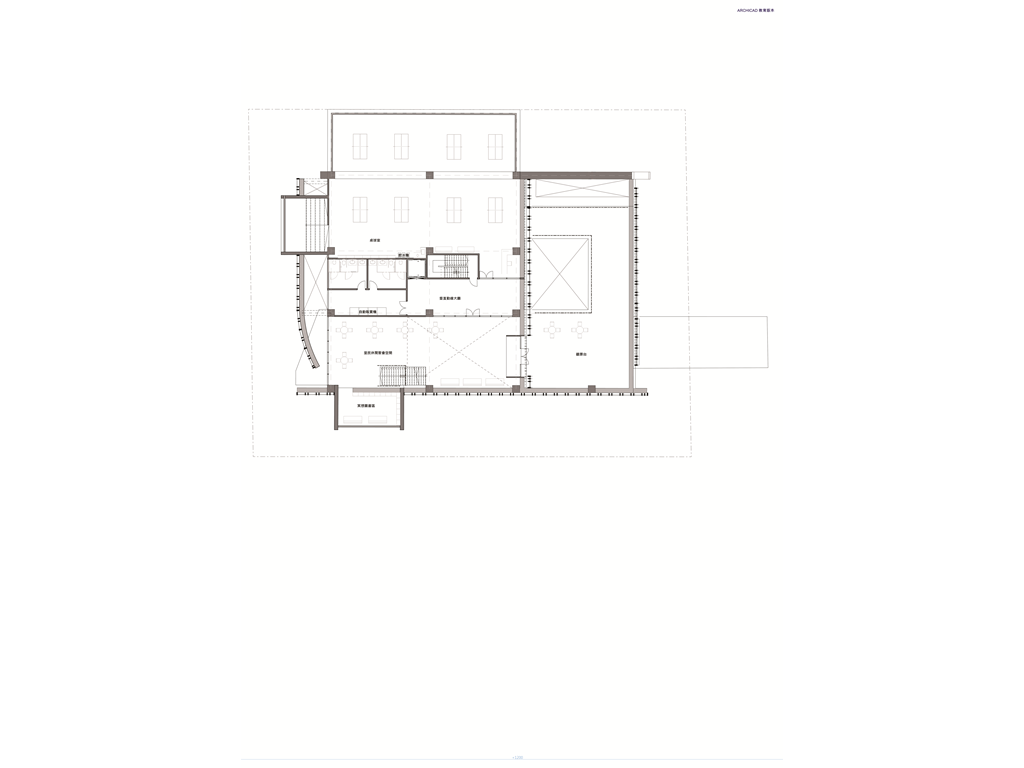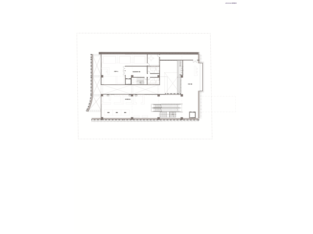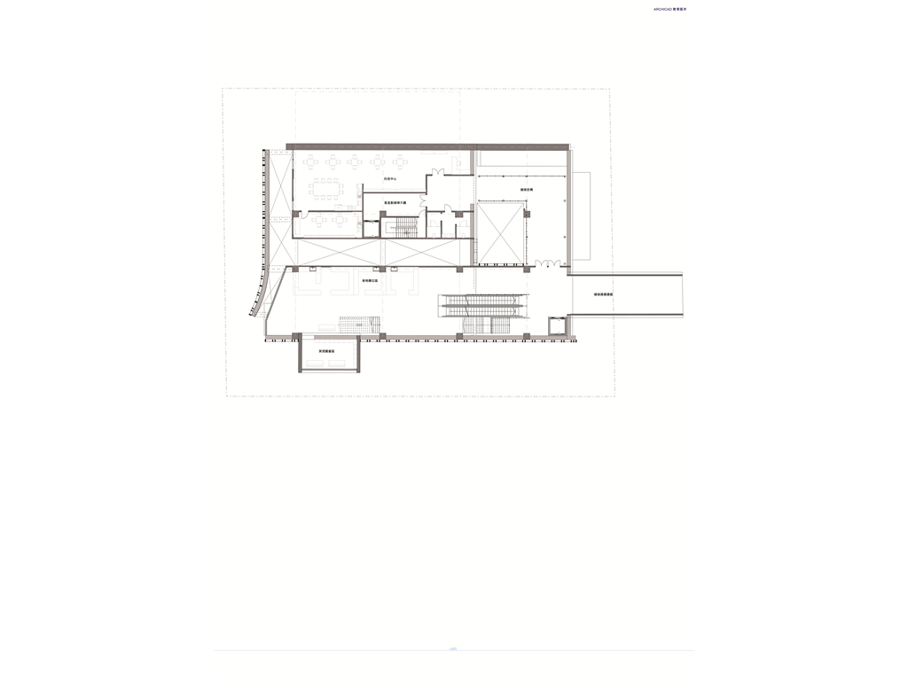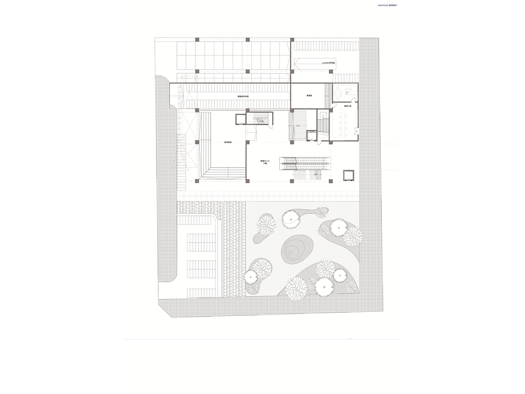 配置上根據基地分析所畫出的象限圖,簡單的分為捷運入口以及里民服務盒(垂直動線所在),(以下皆以坐向北朝上來看)捷運相關入口位右下角,手扶梯或樓梯上去以後可看到食物攤位空間以及冥想圖書館區,並在三樓設有與捷運的連接通道。其中於三樓捷運出口處往上方走連接左上方的里民服務盒為廊道,提供捷運站的人們方便連接托兒以及托老的服務機構。