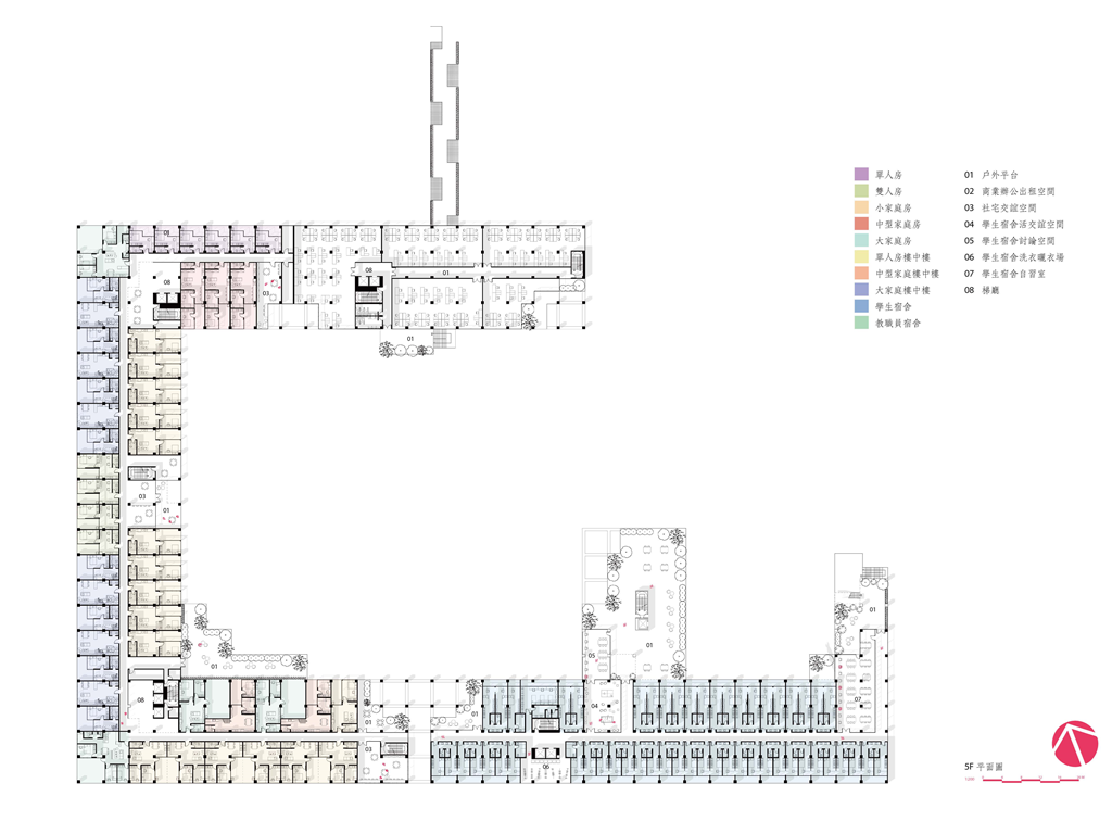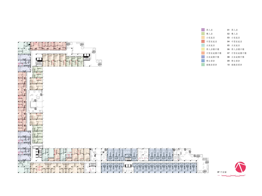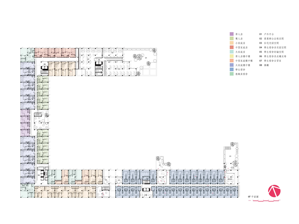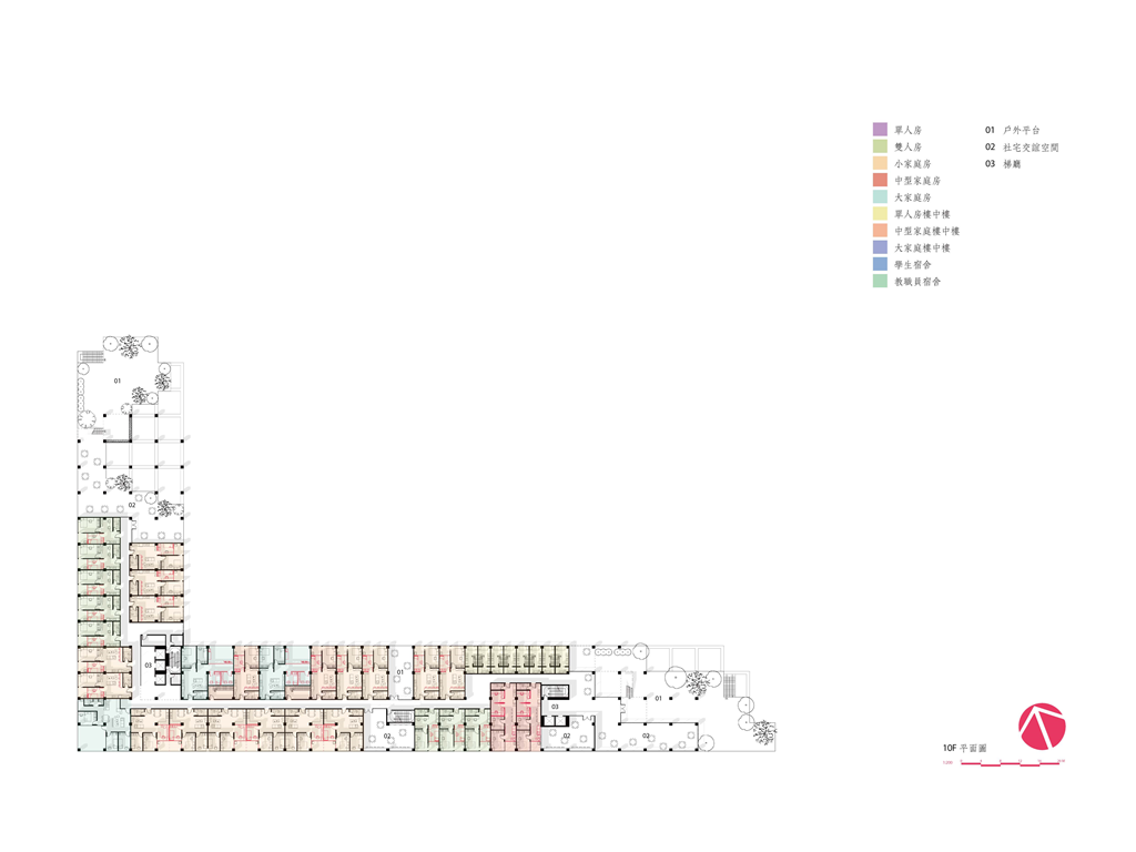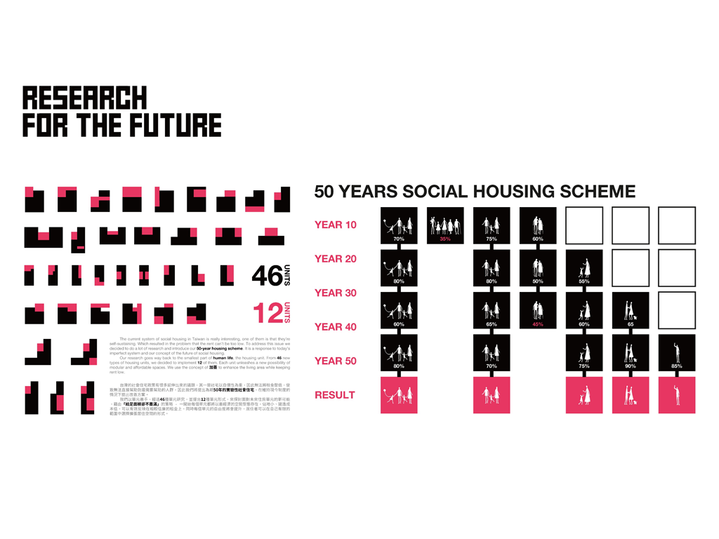 同時我們以單元著手,從46種單元研究中篩選出12種單元形式,探討面對未來住房單元的新可能,並提出「給足面積卻不蓋滿」的策略——最初每個單元都將以最經濟的空間型態存在,佔地小、建造成本低,可以有效反映在相較低廉的租金上,同時每個單元的自由度將會提升,居住者可以在自己有限的範圍中選擇擴張居住空間的形式。