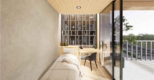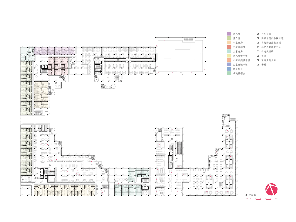 框架不僅有助於我們設計不同的房型,同時更與加蓋區互相配合,我們在框架中以留白來提供居住者依照自身空間需求與喜好自由安排空間,無論是夫妻增加一個臥房來迎接新生命,抑或是SOHO族增建工作室或書房,這些加蓋區無疑為社宅增添了生命與活力。