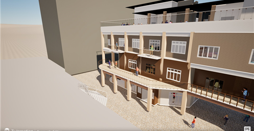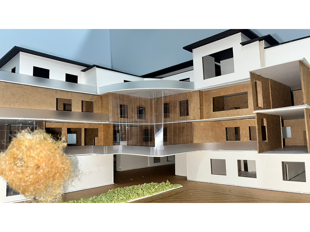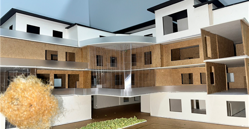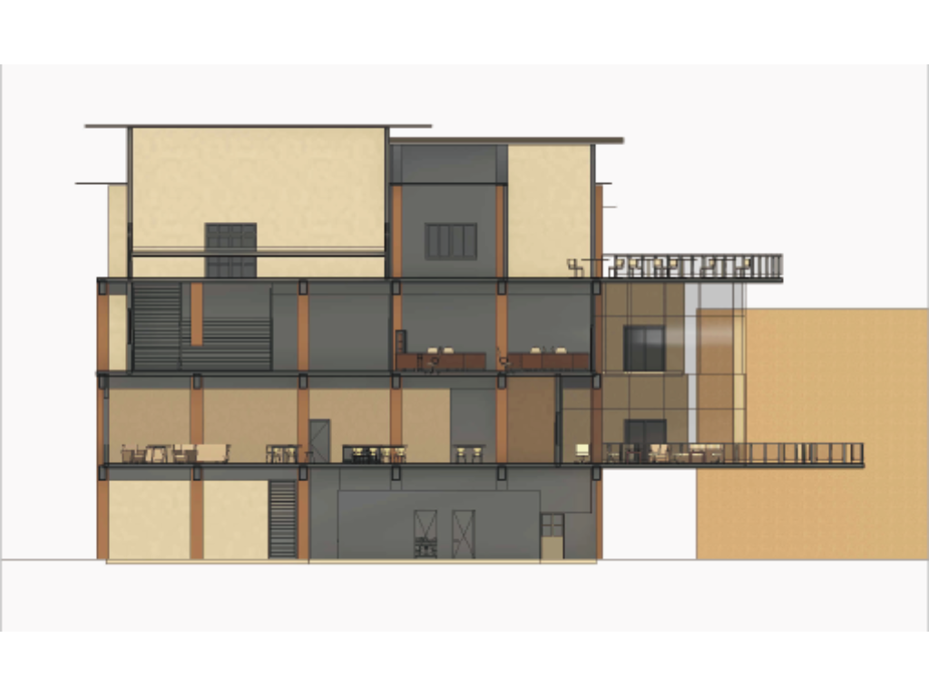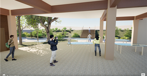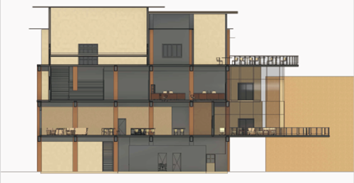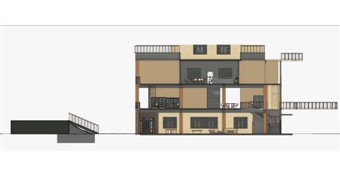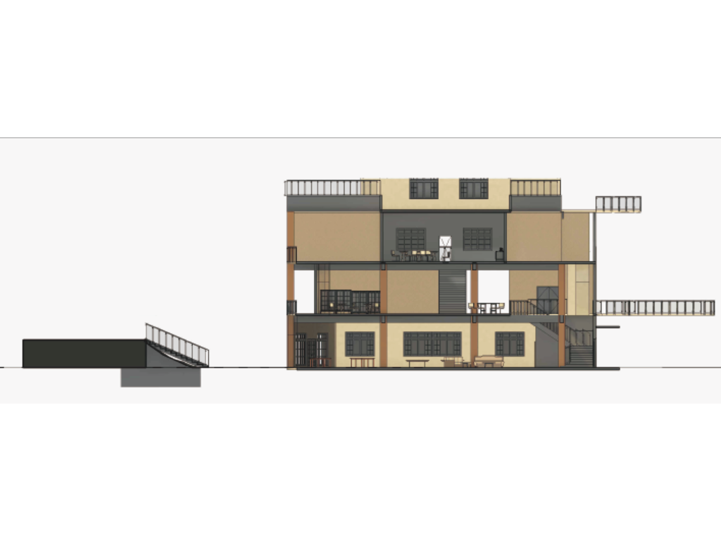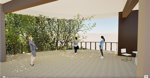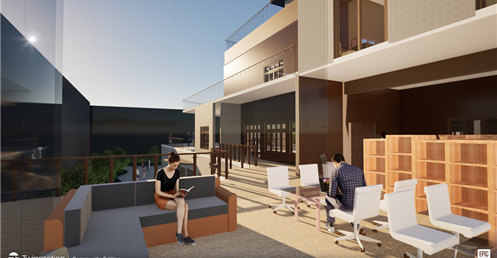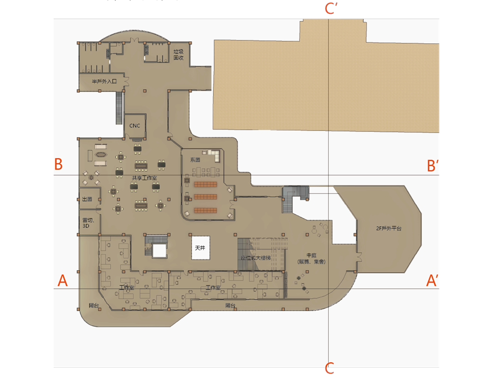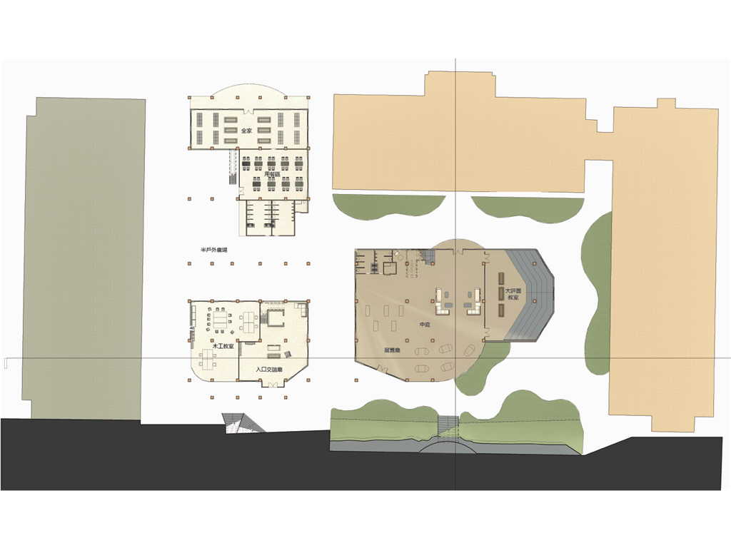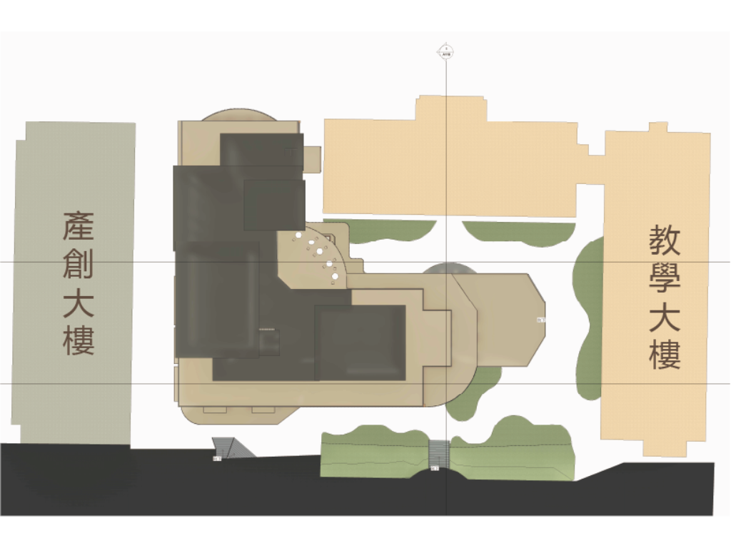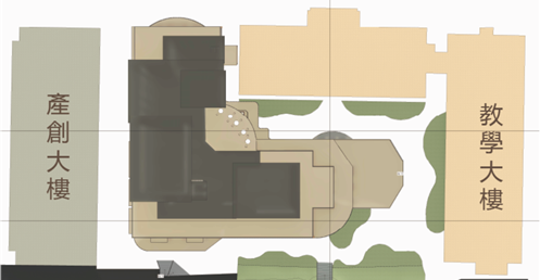 期望給予師生充滿活力與創新的交流空間,不同於傳統教學式在同一個室內做評圖交流,將交流空間延伸至走道樓梯間甚至式戶外平台,形成聚集、交流互動與創新的場所。