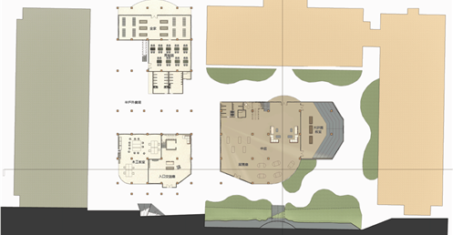 在視覺上彼此分隔,釋放系館與外部環境的空間,