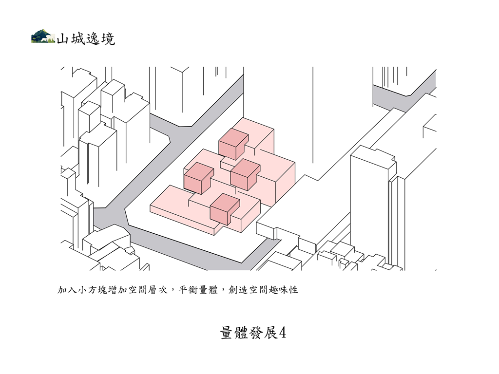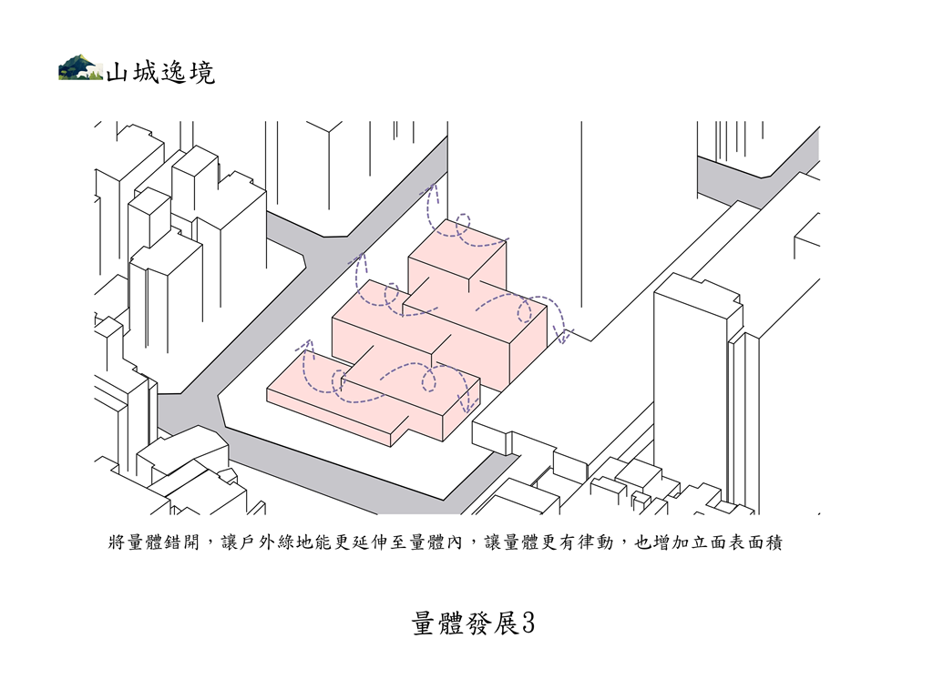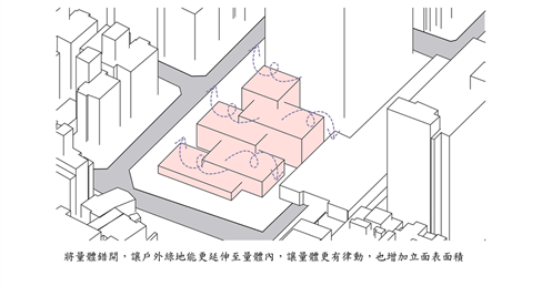 3. 將量體錯開,讓量體更有律動,也增加立面表面積