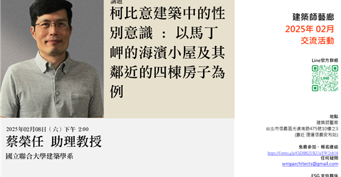 講題:柯比意建築中的性別意識 : 以馬丁岬的海濱小屋及其鄰近的四棟房子為例