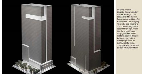 →靠近東京車站跟皇居的瑞穗銀行新總部的頂部6層;建築物地上38層、地下6層 高度199.7米;酒店內裝用3個元素:石頭、木頭、跟 和紙去組成;外牆垂直遮陽版是很薄的石片;