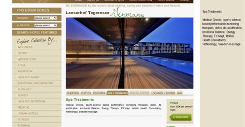 → 高級溫泉渡假酒店;森林湖泊;搭配專業的醫美團隊;建築跟室內設計刻意低調簡潔,讓旅客放鬆;