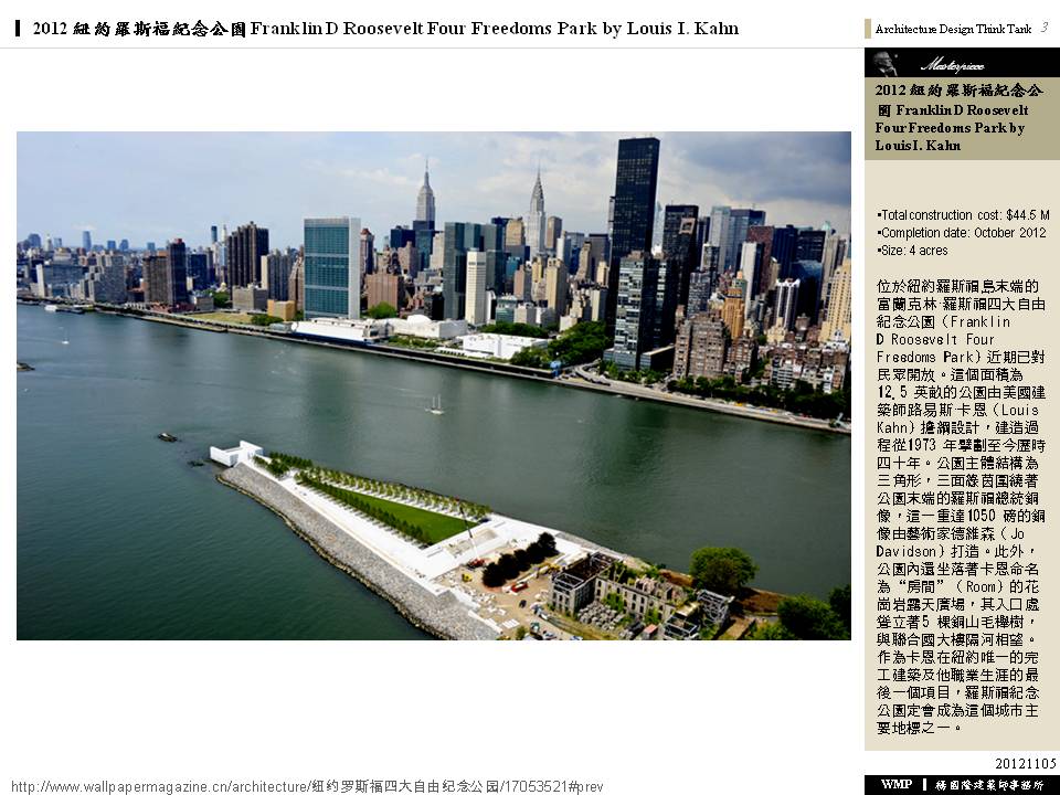 2012 紐約羅斯福紀念公園 Franklin D Roosevelt Four Freedoms Park by Louis I. Kahn