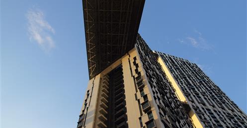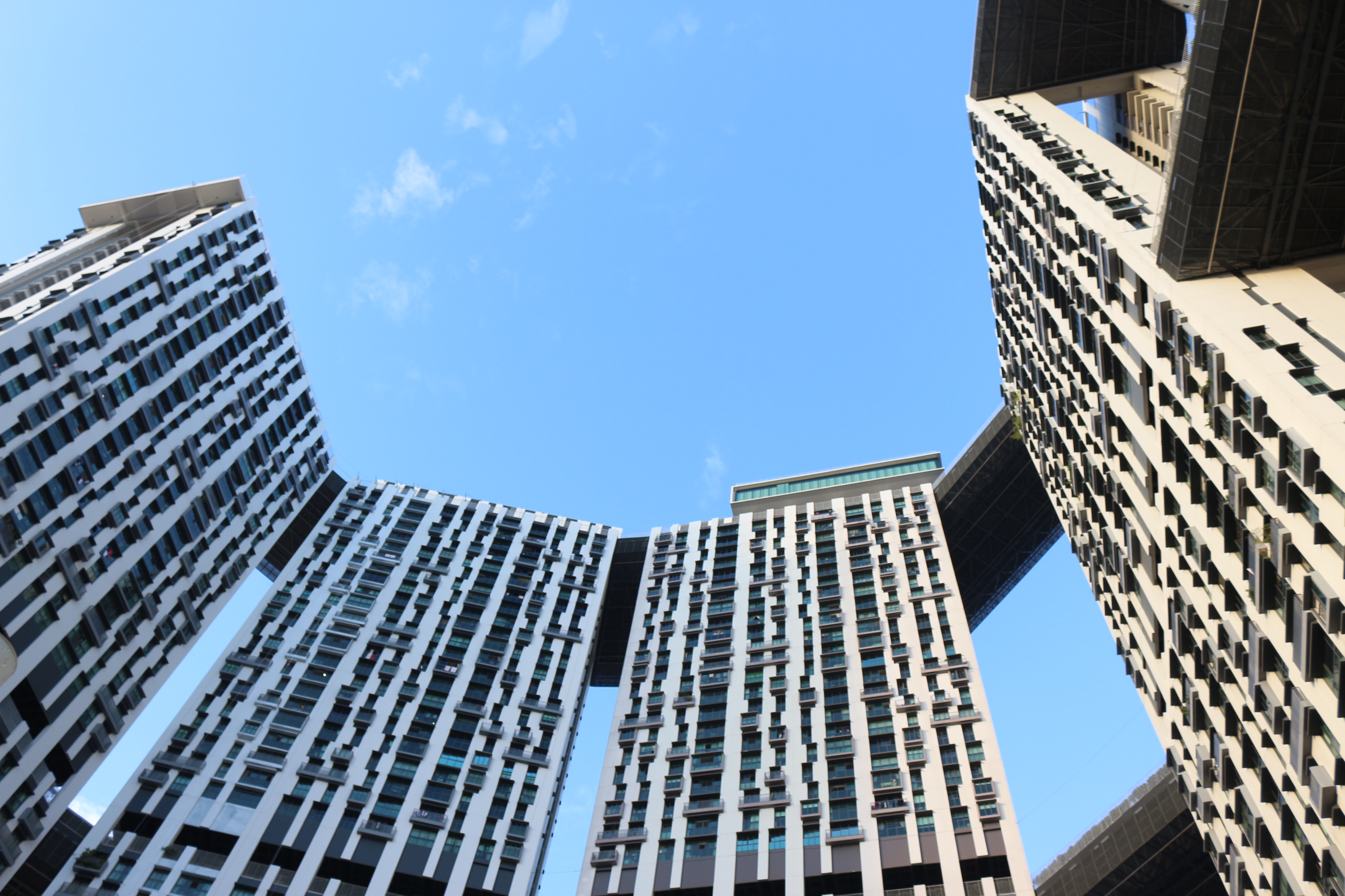 The Pinnacle@Duxton is an award-winning 50-storey residential development in Singapore's city center, next to the business district.The project features the world's two longest sky gardens of 500 metres (1,600 ft) each, on both the 26th and 50th floors. All seven connected towers are collectively the world's tallest public residential buildings.