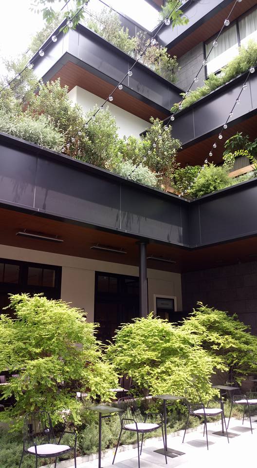 Craft coffees and cocktails are served to locals as well as guests in the lively lounge and terrace, which is set around the base of a leafy Zelcova tree alongside large white cushions made from refashioned boat sails. Other highlights include its restaurant, Kitchen, complete with a large chef’s table at the back, a small kushiyaki grilled meat outlet, a pop up space, four banquet rooms and a clean-lined wooden rooftop chapel (guaranteed to be bit a hit in wedding-crazed Tokyo).