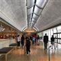 Kahn envisioned a museum with “the luminosity of silver,” illuminated by “natural light, the only acceptable light for a work of art, [with] all the moods of an individual day.” He achieved this through a design with “narrow slits to the sky” to admit daylight and pierced metal reflectors hanging beneath them to diffuse and spread the light from its hidden source onto the underside of the cycloid-shaped vaults and down the walls. Courtyards, lunettes, and light slots introduce more light, varying quality and intensity. Architectural space and light are further unified by the choice of materials: deftly handled structural concrete is juxtaposed with Italian travertine, fine-grained white oak, dull-finished metal, and clear glass. Kahn characterized the Museum building as inspired by “Roman greatness.” The classical appearance of its porticos, arches, and vaults is often cited.
