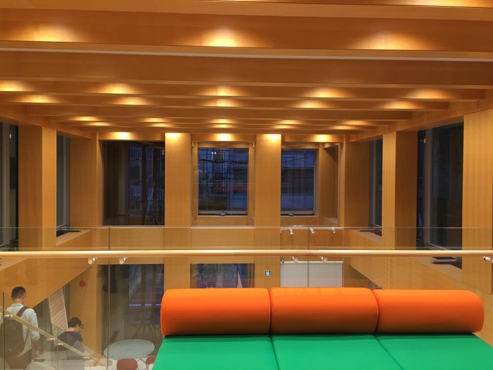 因此王銘顯等建築師在一位日本人-西本幸夫爺爺的鼓動下,成立了台灣本之家之種子研究會。這回就特別參訪了歯科医療機器メーカーの大阪営業所ビル(普立茲克獎得主丶日本坂茂)及大阪木板仲買協會館(竹中工務店)-2015年「日本建築學會賞」最佳建築。