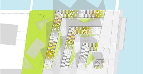 頂層和底層相互錯開,中間的街道空間朝向水域,使公寓有充足的自然光和水景。