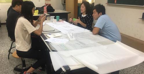 對於初次接觸設計議題的學生,採取"小班式分組教學"的模式,讓每位學生可以與老師充分的討論與學習,化解學生對設計產生恐懼。