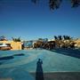 漂流河環繞的中央島嶼,配置品字型建物做為主題餐廳及休憩涼亭,最高尖頂建物內有中央監控室,控管大海嘯燈光及音響,大海嘯設備機房與員工辦公室共構。