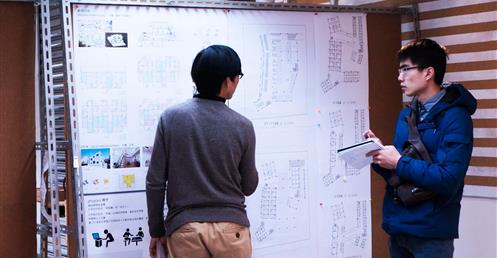 因此產生生活周遭中各式的門,在建築中主要作為通道的開口;連接兩岸莘莘學子與居民來往交流的金門;在金門的學子每年每月於家鄉與金門間往返的必經之門;每個時間的到來、每個空間的拜訪,都賦予新的記憶、如時間膠片般的門;當累積的經驗越多,積累的時間亦越長,形成宛若通道的門;連結家與外圍的家門、連絡垂直空間的電梯門、以有形表示無形精神的牌樓、代表學生身分開始與結束的校門、通往各地的登機門等諸如此類。