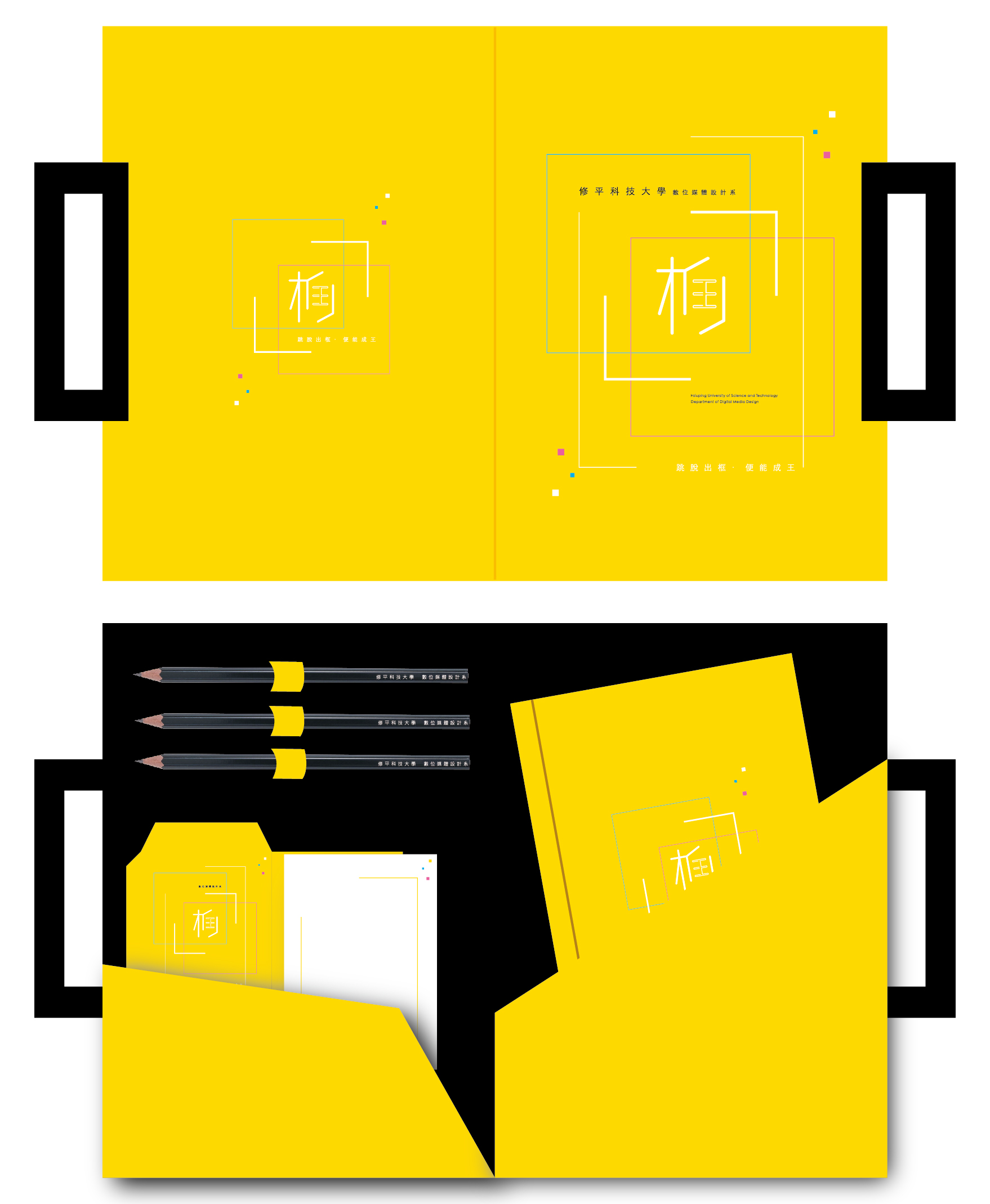 這個社會中充滿了各種的限制,因種種規則而束縛了無疆的思考、因外在眼光而只能循規蹈矩,因自己害怕不同而停滯不前。即將成為設計師的我們,期望跳脫一個又一個畫地自限的牆,脫離自己給自己的框,成為跨出"框"字的王,在我們的將來綻放無限的光彩。