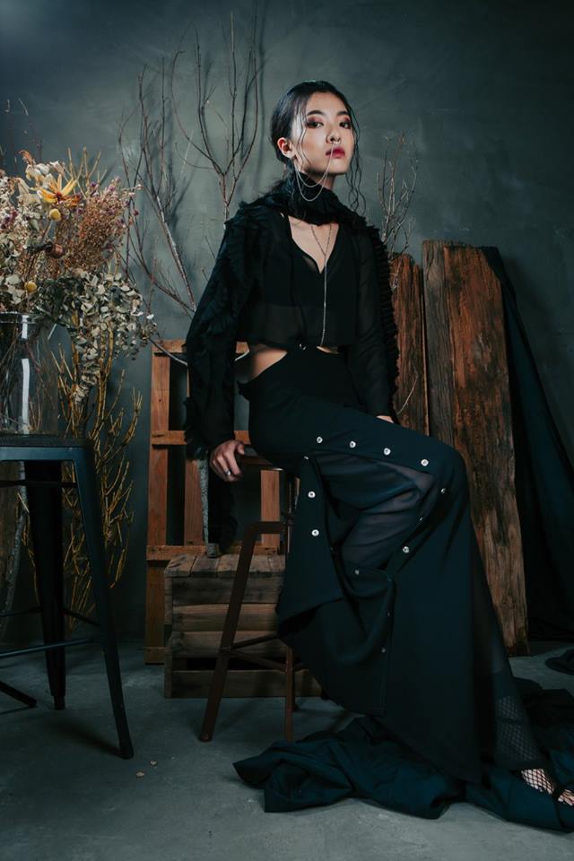今年嶺東科大流設系畢業生共同策劃以「嫣織寇」為主題,意指:「我們如同升起的太陽,由東方照亮世界,世界只能俯首稱臣;我們如同寒月,千錘百鍊的名刃,名刃出鞘只為江山。剛柔並濟演繹我們潛藏不住的野心」。此註解道出嶺東科大時尚學院流設系大四畢業生對於畢業成果的堅持與決心。