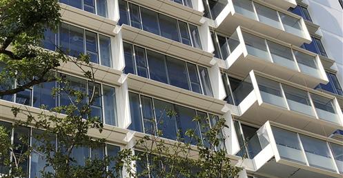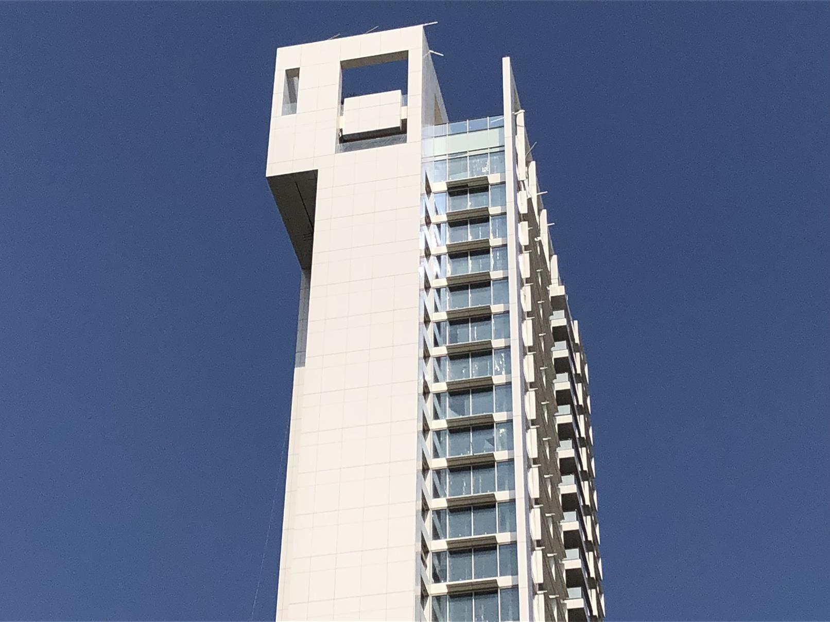 Richard Meier 在台北市松仁路信義路口的高層住宅。預計今年完工。