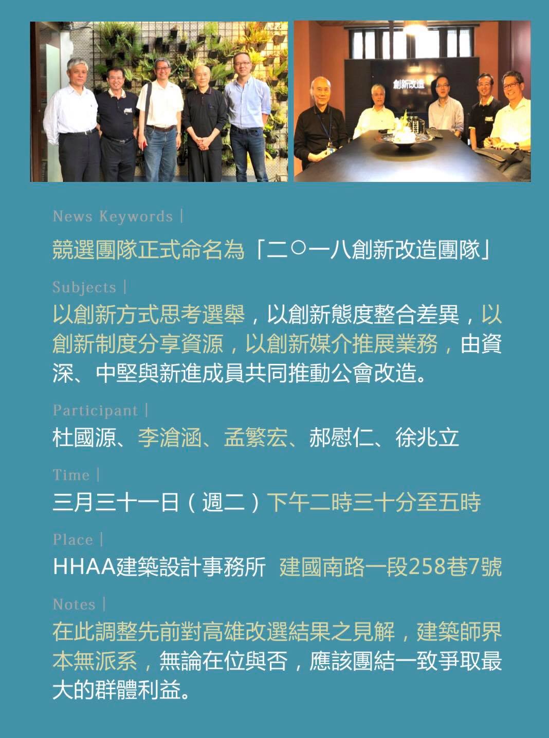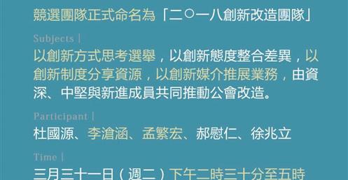 2018.3.31正式命名為「二○一八創新改造團隊」,確立競選中心思惟: