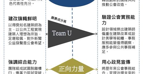 要贏得選舉並真正達成穩定改造,必須了解公會是專業服務的利益團體,事務不應偏廢在建築改革或設計美學等特定範疇。尊重建築師公會現有的執政成果,而轉由創新的團隊,包含資深、中堅與新進成員共同推動公會改造。