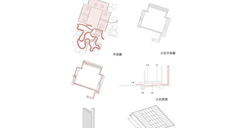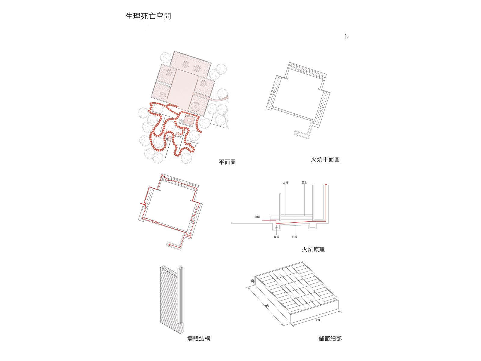 用磚墻象徵村莊與傳統文化,用鋼構代表工業社會的城市。用結構變化討論村莊與城市的生存死亡關係。「生理死亡空間」的構造為磚造支撐鋼構,磚造為結構。「身份死亡空間」的構造為鋼構支撐磚墻,鋼構為結構。「記憶死亡空間」的構造為純粹磚造,回歸傳統技法。在材料與空間變換中,使得後代子孫思考前人的意義。