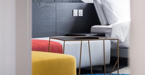 緊鄰台中綠園道的老爺行旅,為呼應品牌的定位並結合周邊環境的氛圍,空間設計以「藝廊」為整體概念,白色純淨的量體穿透全館,搭配流動於其中的黑色線條,在交互作用的過程裡,或為展間,或為展品,而偶然跳色的傢俱與裝飾,則成為視覺的調味料,讓旅人淺嘗色彩趣味,也盡情享受老爺行旅想給你的驚喜!