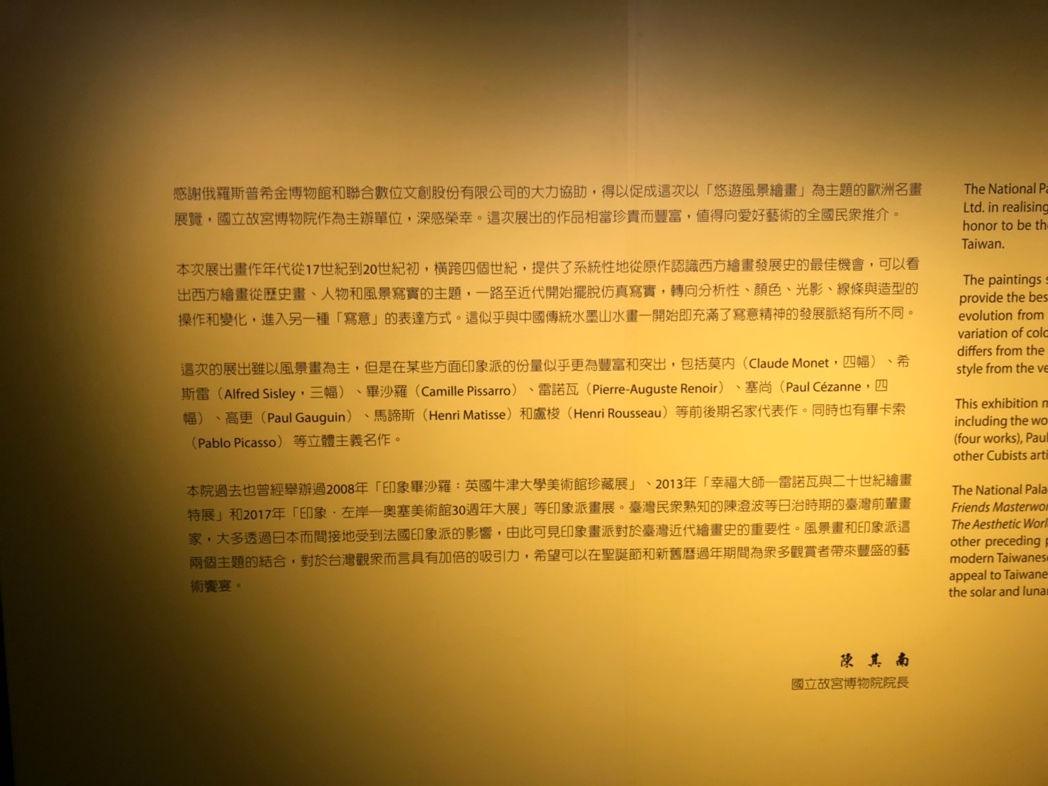 本展覽由國立故宮博物院、俄羅斯普希金博物館和聯合數位文創公司共同主辦,普希金博物館是俄羅斯收藏法國瑰寶鉅作聞名於世的博物館。本次展覽展出65件17世紀到20世紀的風景名畫,並聚焦在19世紀印象派至後印象派的重要畫家傑作。