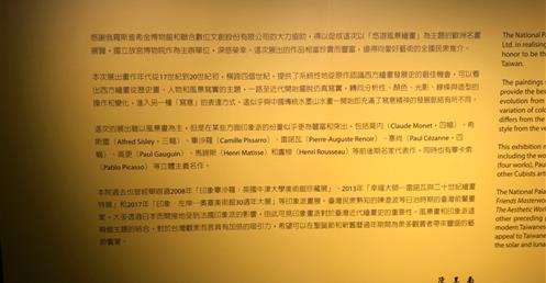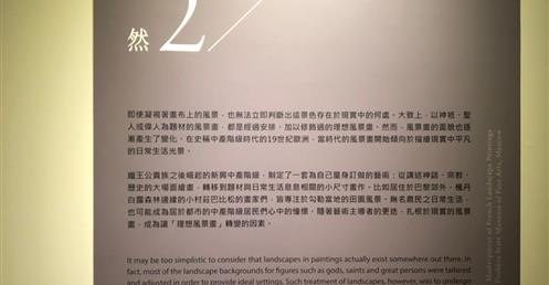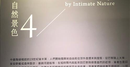 本次展覽將以17世紀到20世紀的風景名畫,共計65件作品展出,並聚焦在19世紀印象派至後印象派的重要畫家傑作。展覽將以近代風景繪畫的起源、對大自然的讚頌、巴黎城市光影及近郊的自然景色、法國南部的明媚風光及海外的異想世界為主題,引領民眾認識法國近代風景繪畫。