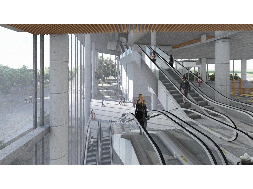 整個設計分為南棟與北棟兩區,南棟為展演與文創產業帶,底層為展演與展銷中心,高層為品牌營運中心與設計者工作室等辦公空間,透過多層次的空間設計,營造創作者與參觀者互動與交流的空間,讓來訪民眾,以參觀體驗的方式加入設計產業的一環。