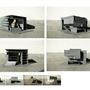在動線上,我將樓電梯與廁所配置成十字的軸線,藉此引入陽光與風,也讓人能有效移動。這十字軸線為受管制的,使四、五樓的辦公與短居使用者能保有其領域,而在內部使用者和外部的互動上,一到三樓配置了一座獨立大斜梯,人們可以坐在上面觀賞懸日,或在斜梯旁空間活動(展覽、劇場、觀景走廊…)提供大眾一處24HR皆不受管制的都市活動場所。